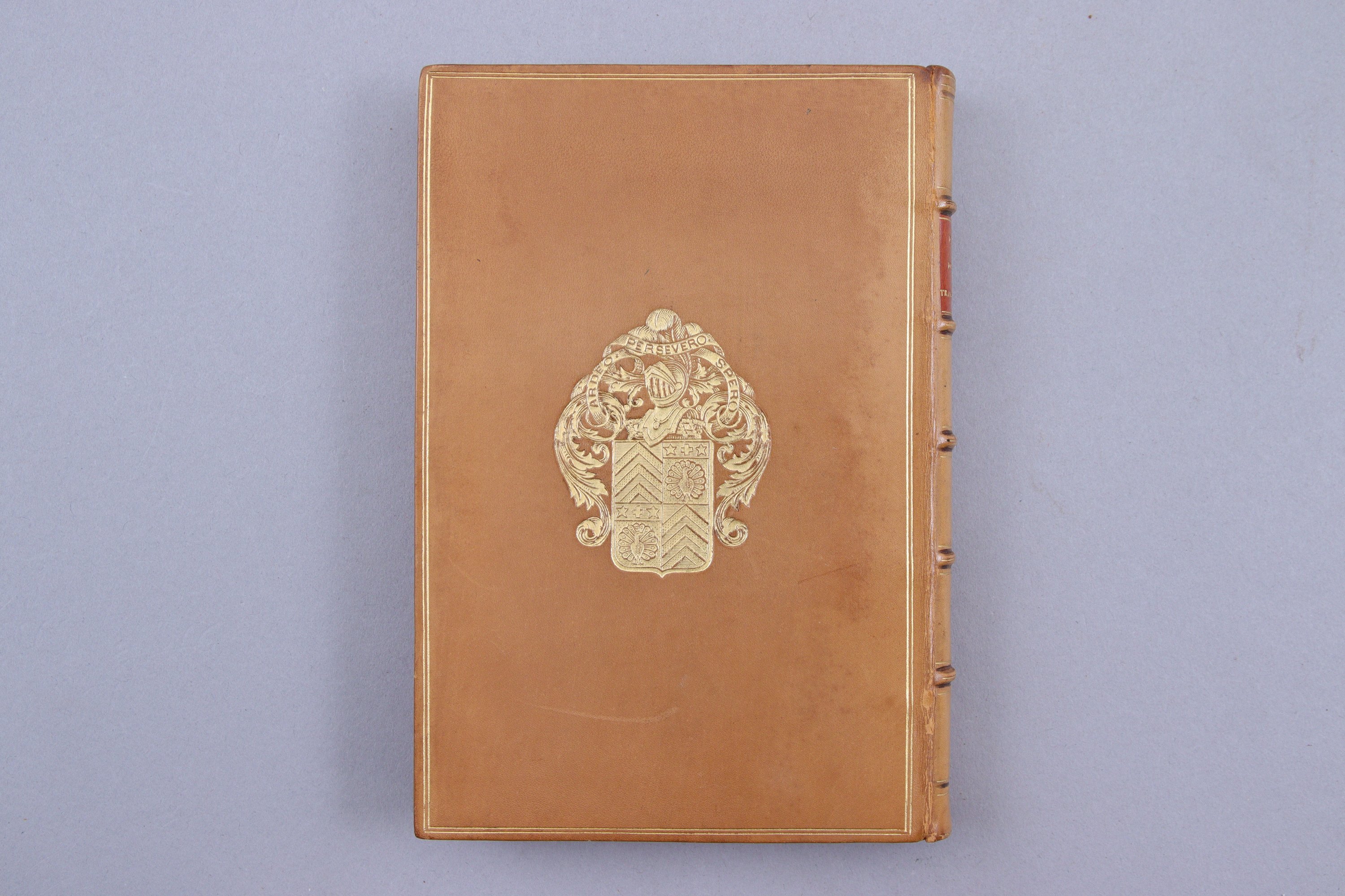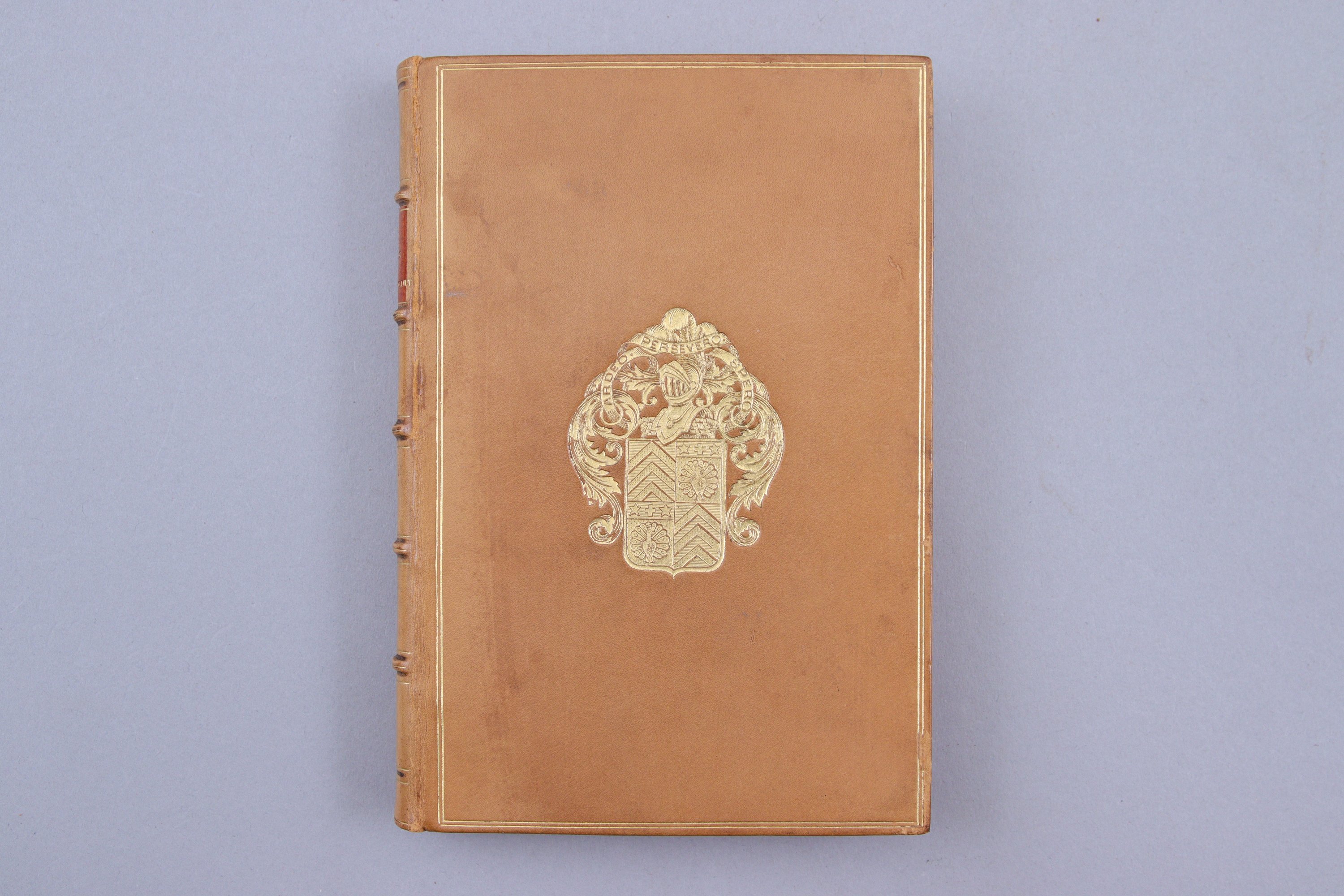 Petit in-8, (12 ff) et 160 feuillets, (14 ff). Plein veau blond glacé, frappé des armes des Pavée de Vandeuvre. Roulette intérieure. (Manques de papier habilement comblés dans la marge de tête des feuillets a1 et a2 ; auréoles de mouillure saine sur 2 cahiers. Le feuillet è5 a été par mégarde placé entre é2 et é3 ; le feuillet é6 a été doublé).