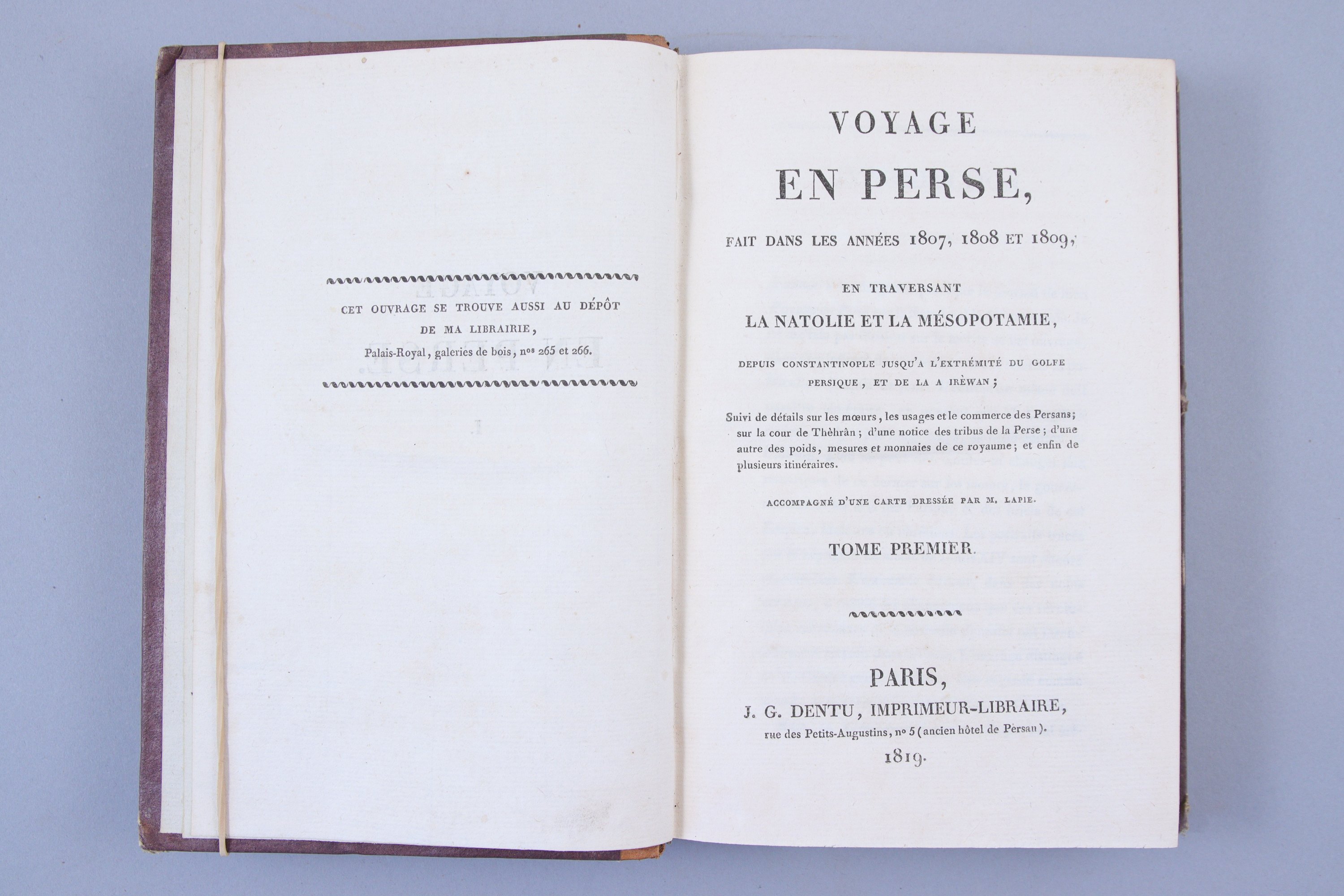 Voyage en Perse fait dans les années 1807, 1808 et 1809 en traversant la Natolie et la Mésopotamie depuis Constantinople jusqu'à l'extrémité du Golfe Persique et de là à Iréwan. Suivi de détails sur les moeurs, les usages et le commerce des Persans, sur la cour de Thérhân ; d'une notice des tribus de la Perse ...accompagné d'une carte dressée par M. Lapie..
