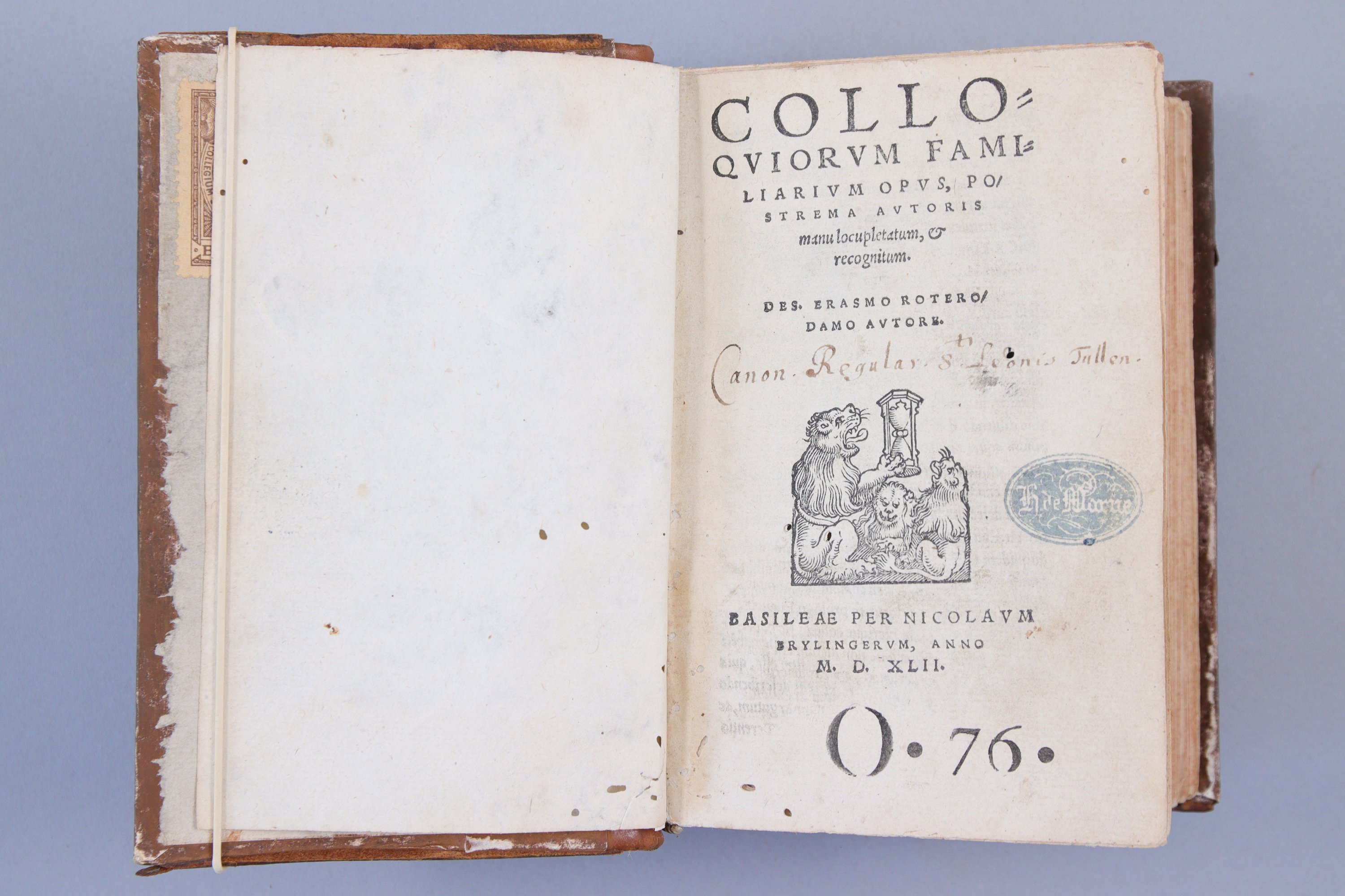 Ex-libris manuscrit XVIIème : Canon. Regular. Sancti Leonis Tullensis (Toul). Etiquette début XXème : Collegium sancti Laurentii a Brundusio (Rome).