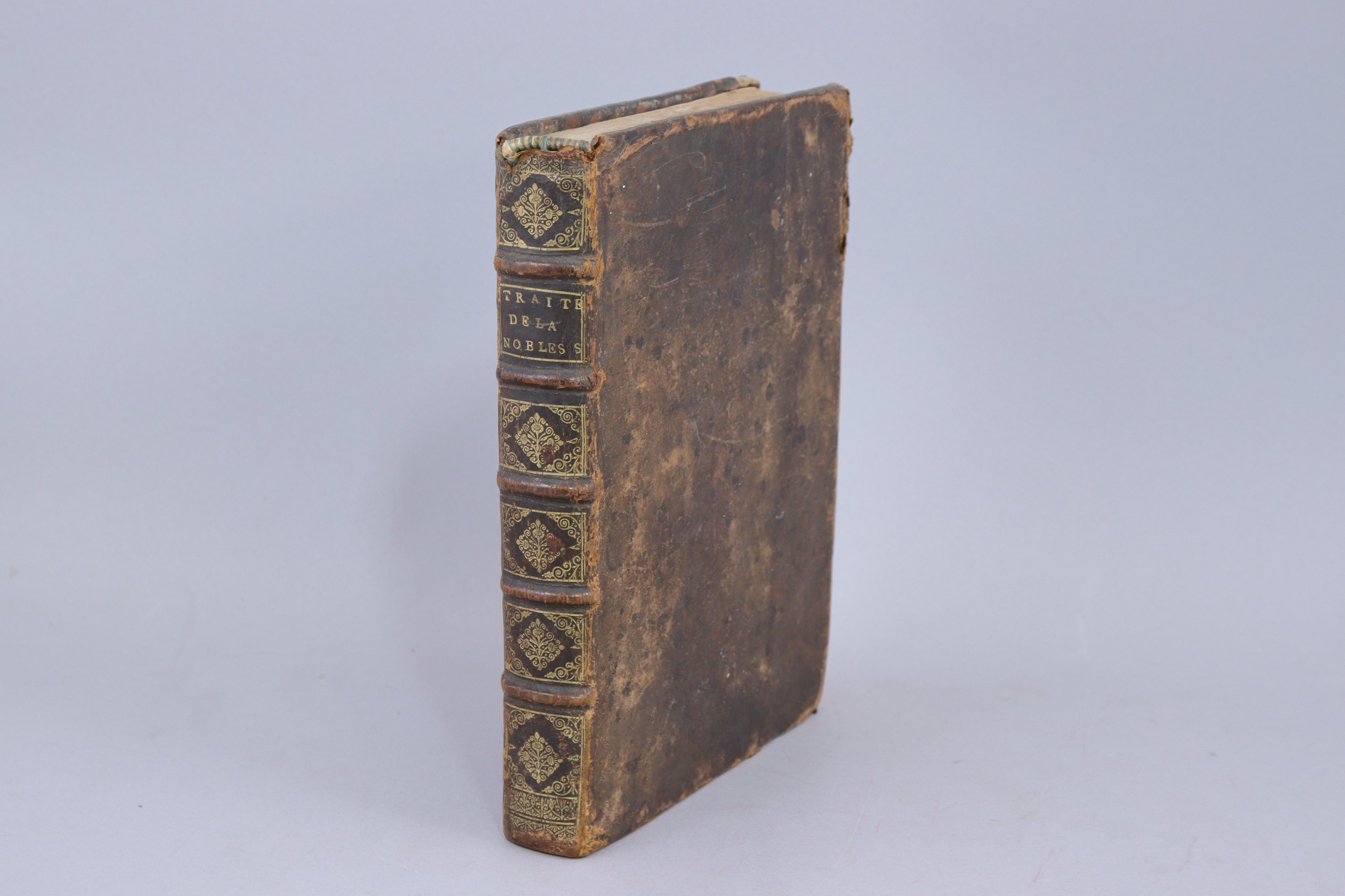Traité de la Noblesse, de ses différentes espèces, de son origine, du Gentilhomme de Nom et d'Armes, des Bannerets, des Bacheliers, des Ecuyers & de leurs différences; Du Gentilhomme de quatre Lignes ; Du Noble de race ... De la Noblesse par Chevalerie .... Des Ordres de Chevalerie ... etc.... Paris, Estienne Michallet. 1678
