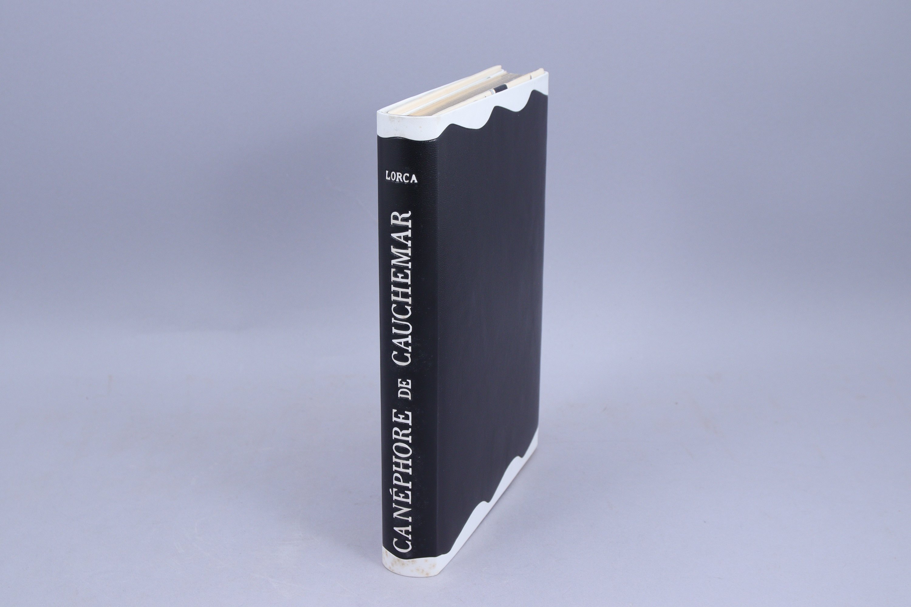 Reliure de Ramon Gomez Harrara, reproduite page 164 dans l'ouvrage "Color a flor de piel. Ramon Gomez encuadernador" publié à Cadix en 2004 à l'occasion de l'exposition de 105 reliures de Gomez, considéré comme un des grands relieurs espagnols contemporains.