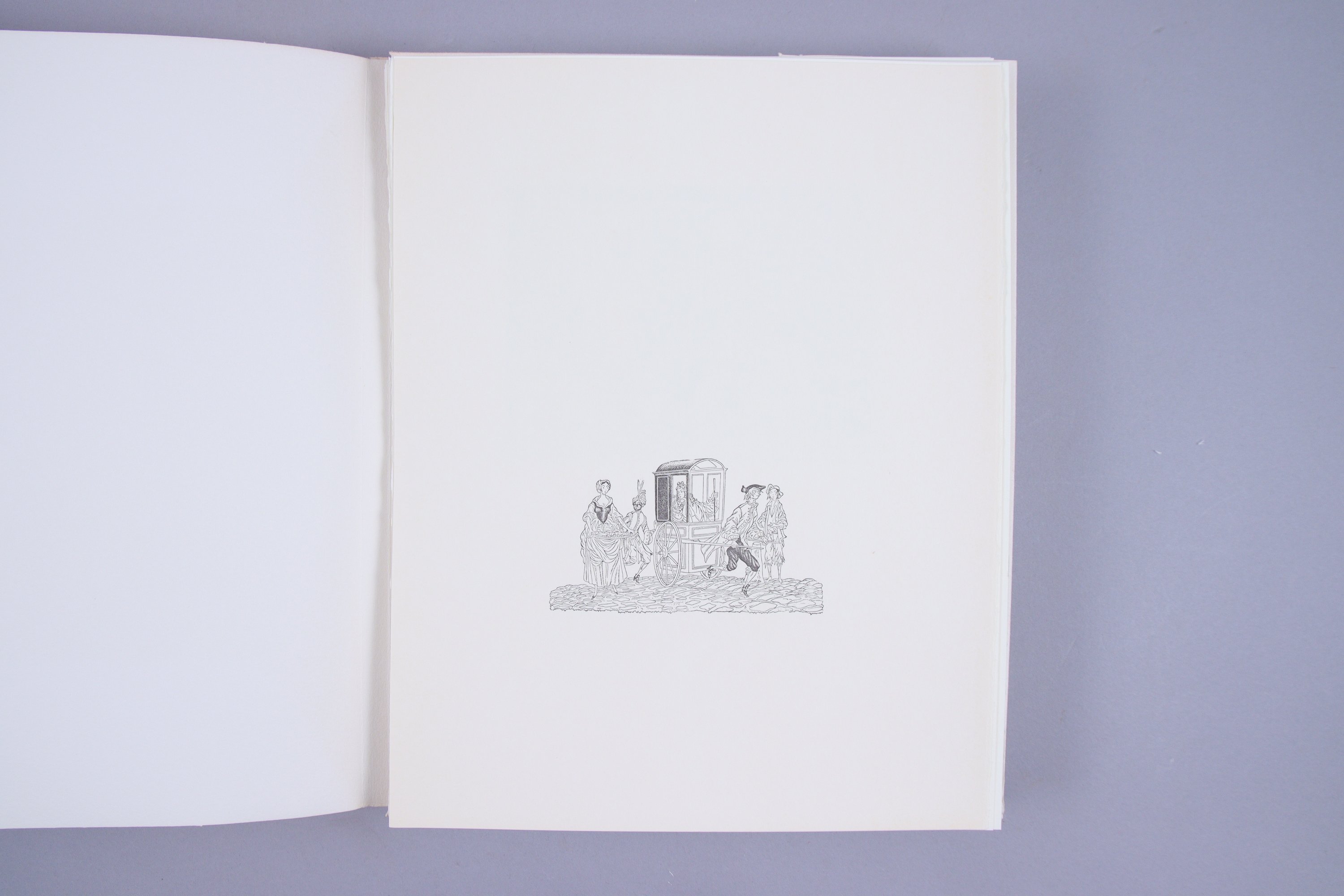 Le premier grand papier ne comprend qu'un exemplaire, 1. Le deuxième grand papier est limité à 8 exemplaires, numérotés de 2 à 9, dont celui-ci, n°5. Il est complet de toutes ses suites sur soie et sur vélin, de ses 3 aquarelles originales, , ainsi que des 3 cuivres encrés.