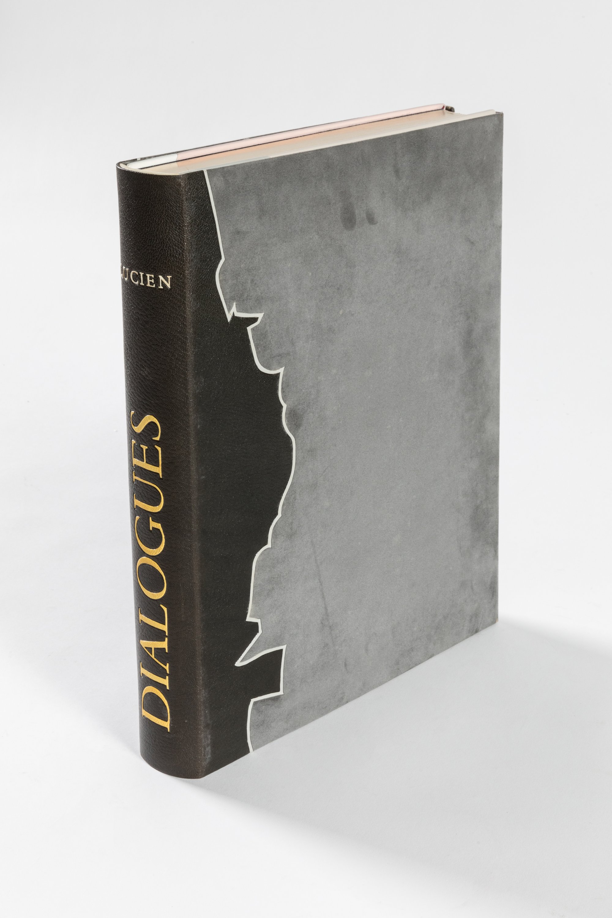 In-folio (380 X 282 mm), Mosaïque multicolore de veau sur les plats; gardes de feutrine noire, dans laquelle est intégrée une mosaïque de maroquin figurant un hoplite. Tête dorée. Chemise de feutrine gris souris avec dos de maroquin noir. Etui. Riche reliure de Ramon Gomez Herrara, un des relieurs espagnols majeurs de la seconde partie du XXème siècle.