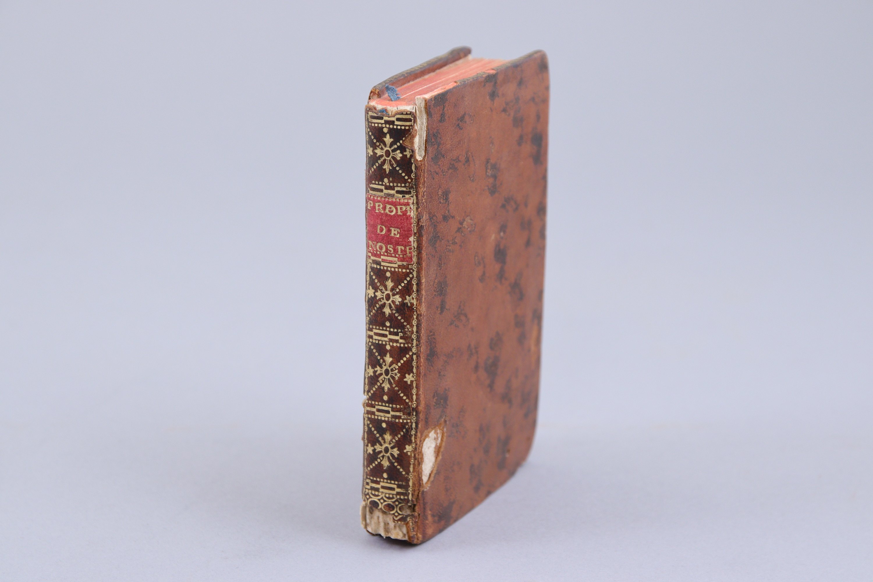 2 ouvrages en 1 volume in-16. 125 pages et (3 pages) blanches ; 78 pages. Basane marbrée de la fin du XVIIIème siècle. (Coiffes arrachées ; coins usés ; épidermures. Une vingtaine de feuillets sont endommagés dans l'angle inférieur, et dans l'angle supérieur avec atteinte à quelques mots, en raison de consultations fréquentes -et compulsations frénétiques- "au doigt mouillé" de quelque nostradamane anonyme.).