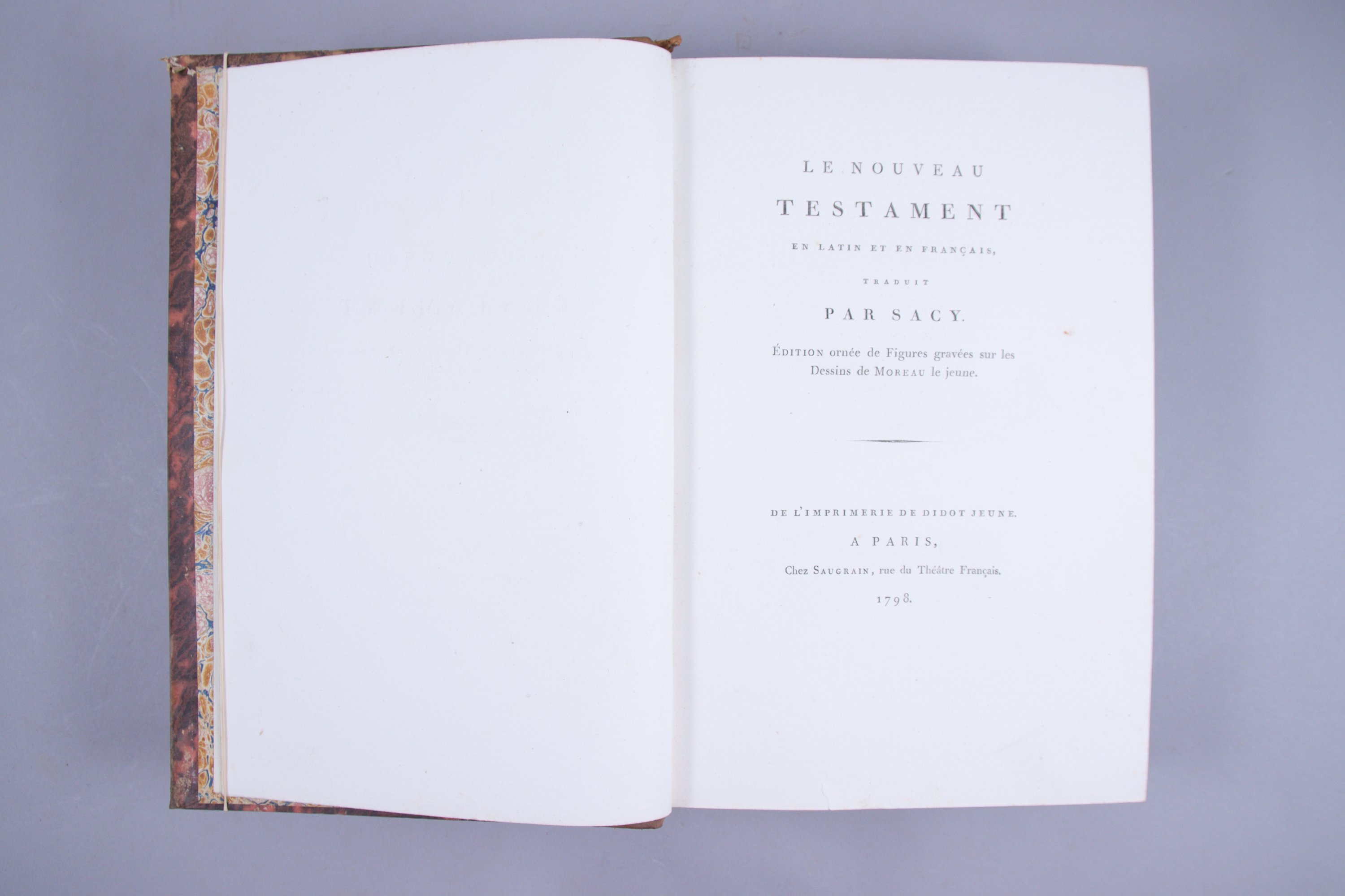 Le Nouveau Testament en latin et en français, traduit par Sacy. Edition ornée des figures gravées sur les dessins de Moreau le Jeune.