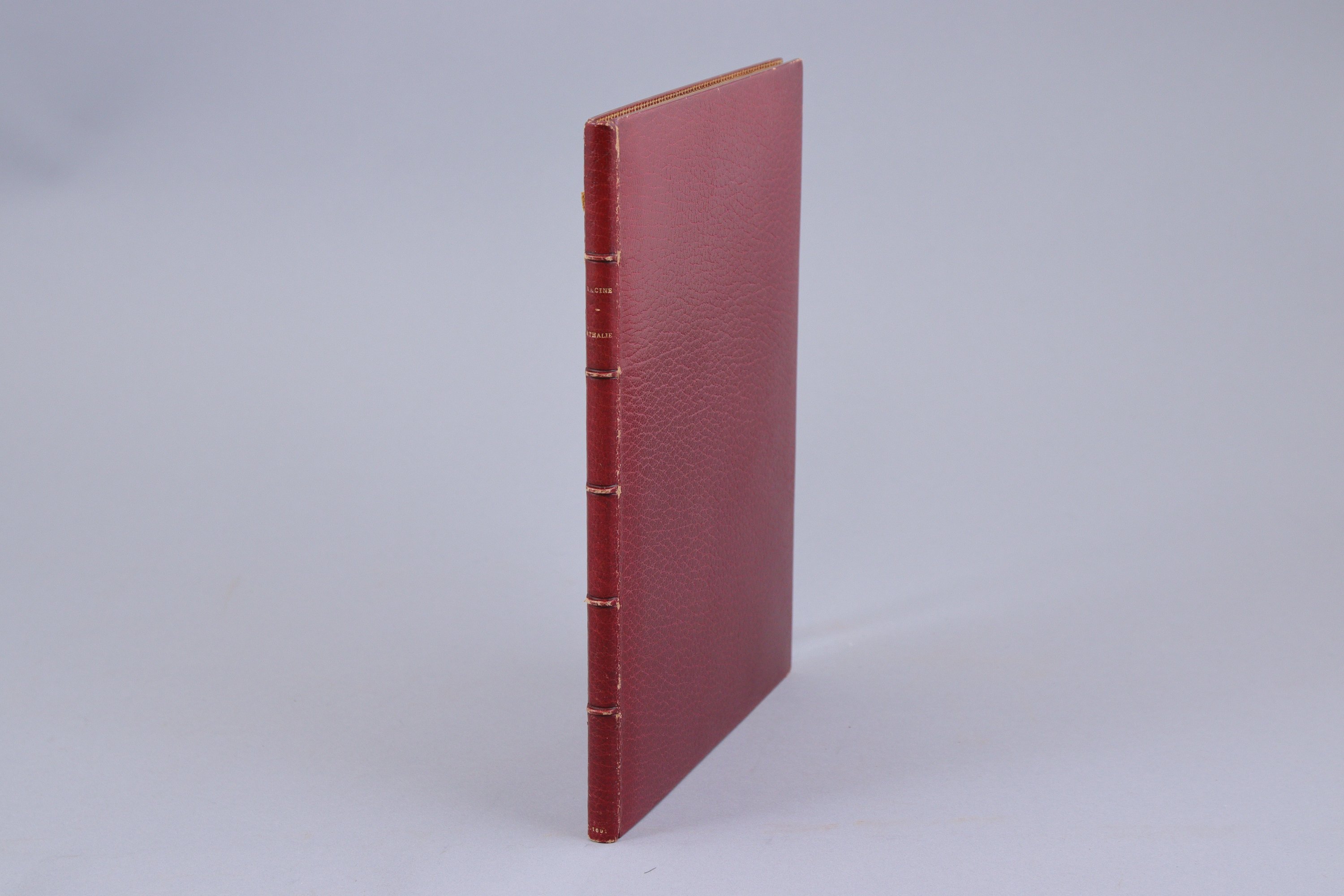 In-4°, (6 ff.) et 87 pages. Maroquin janséniste bordeaux, dentelles intérieures, tranches dorées. Reliure du XXème siècle, signée Marcel Godillot. (Le frontispice manque. Charnière frottées).