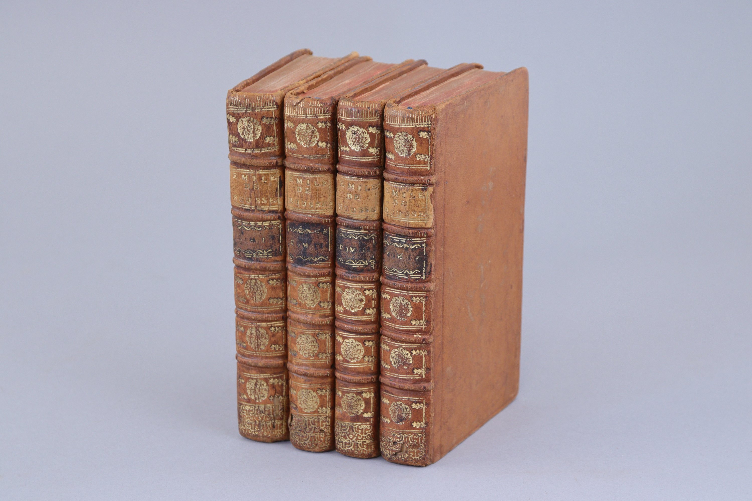 4 volumes in-8. Faux-titre, titre en noir, X pages, (1 f), 442 pages. Faux-titre, titre et 383 pages ; faux-titre, titre et 328 pages ; faux-titre, titre, 463 pages et (2 ff) pour un privilège hollandais. Veau fauve, dos orné. Reliure du temps. (Pièces de tomaison preque effacées ; ors des dos un peu ternis. Une piqûre de ver au dos du tome I, une autre au dos du tome IV, ne touchant pas le corps d'ouvrage. Quelques rousseurs bénignes).