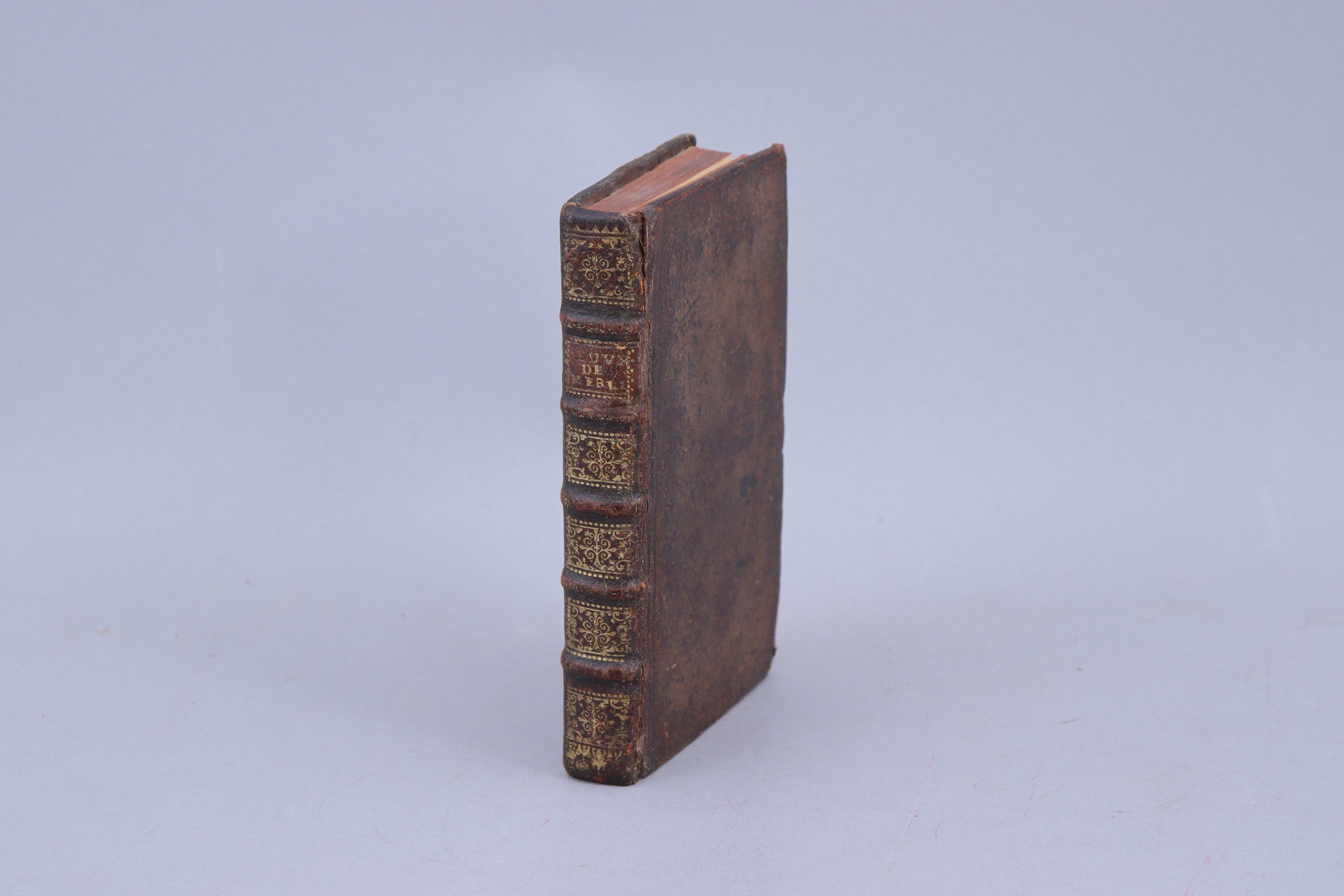In-12, (6 ff), 275 pp et (4 ff). Veau du temps.. (Petit accident à la coiffe supérieure. Une déchirure bénigne a été réparée dans la marge de tête du feuillet A).