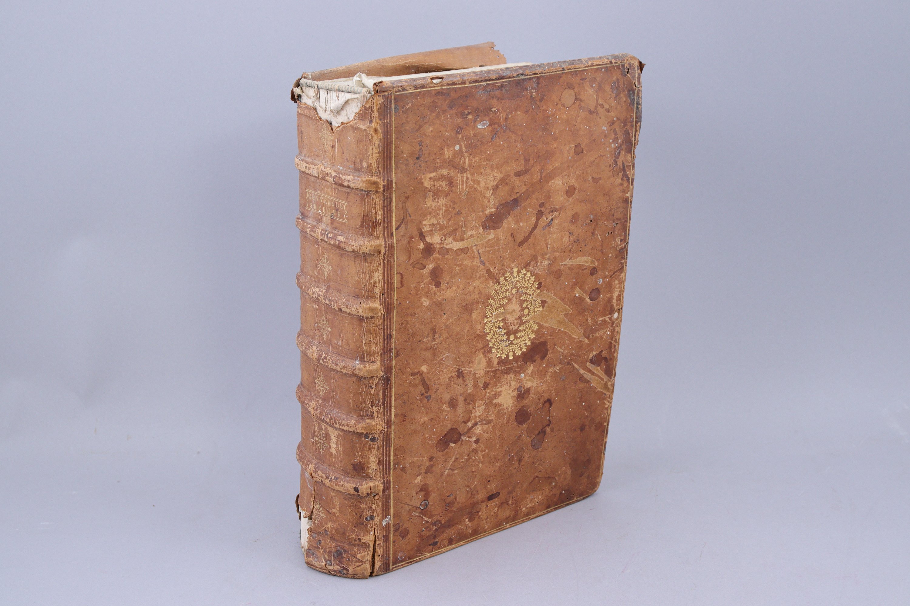 2 ouvrages en 1 fort in-folio. (8 ff), 523 feuillets, (15 ff). (4ff), 318 ff, (2ff). Plein veau fauve ; encadrement d'un filet doré, couronne d'olivier au centre des plats. Reliure du temps. (Pliures sur les premiers feuillets. Coiffes arrachées. Coins usés. Carton du second plat très endommagé)..