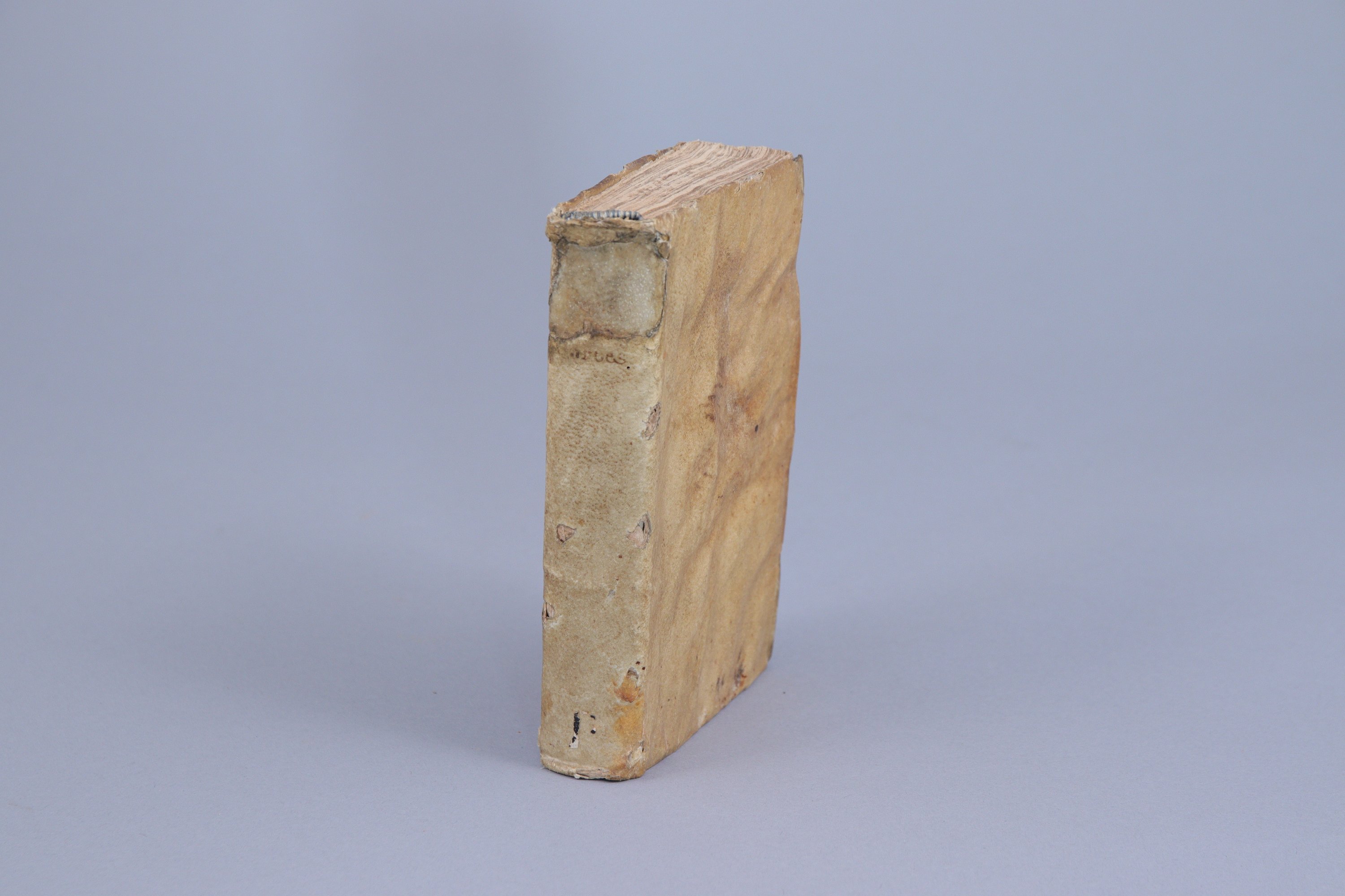 In-16, XLVIII pages et 282 pages chiffrées par erreur 272. Vélin souple du temps. (Reliure manipulée. Mouillures saines. Galeries de vers, affectant parfois le texte)..