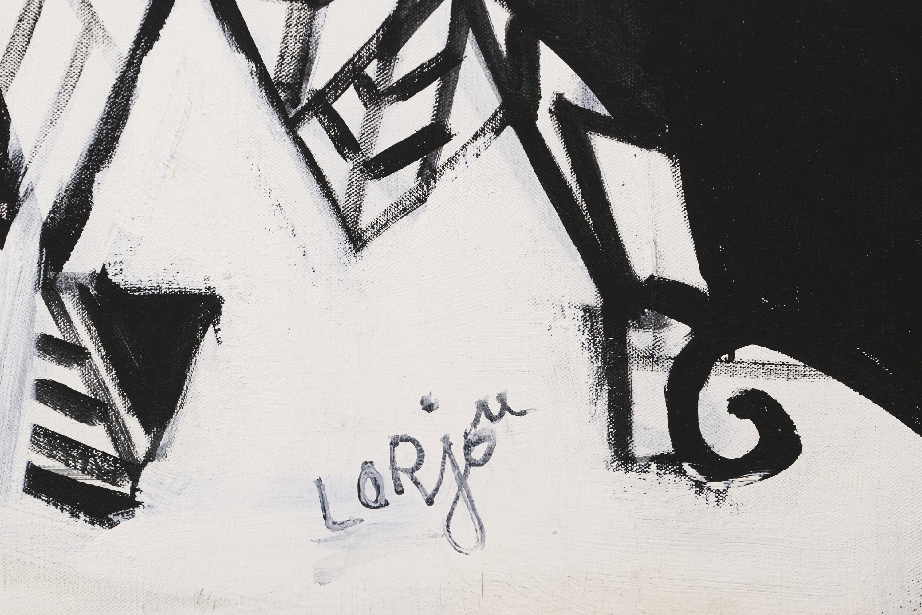 Signée en bas à droite. Étiquette sur le châssis avec le titre et les dimensions.