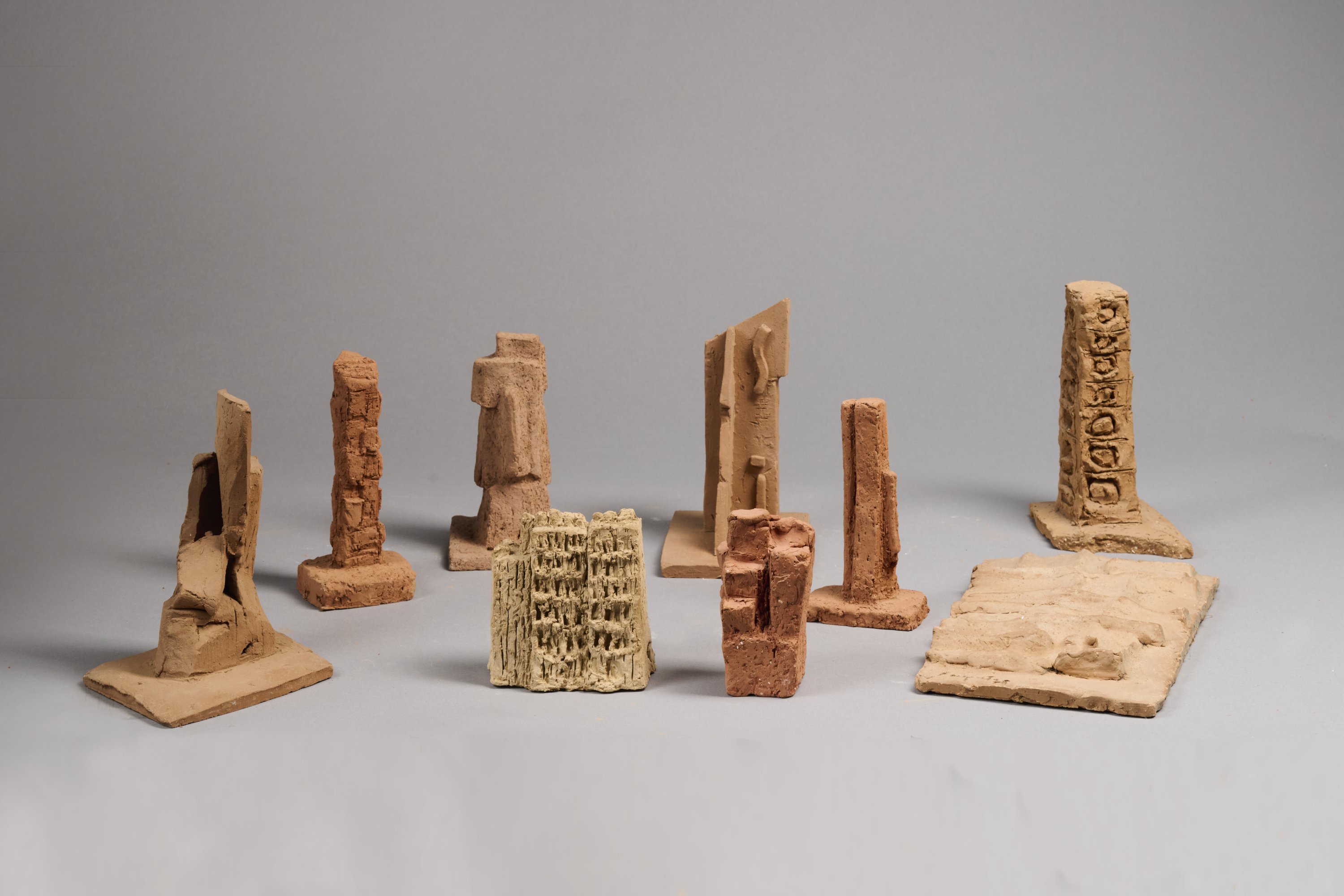 Neuf terres cuites et terre crues, dont un bas-relief.