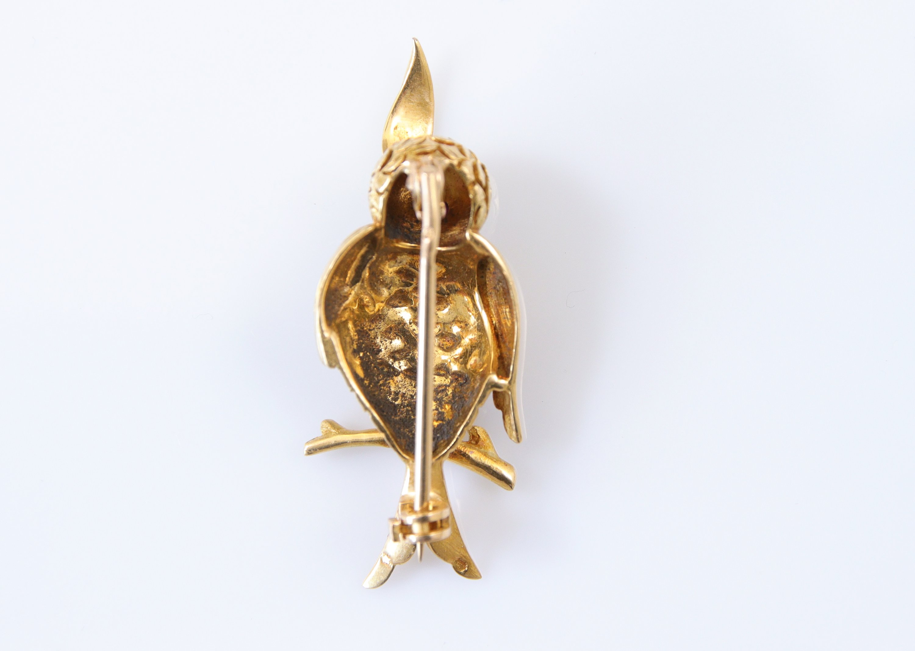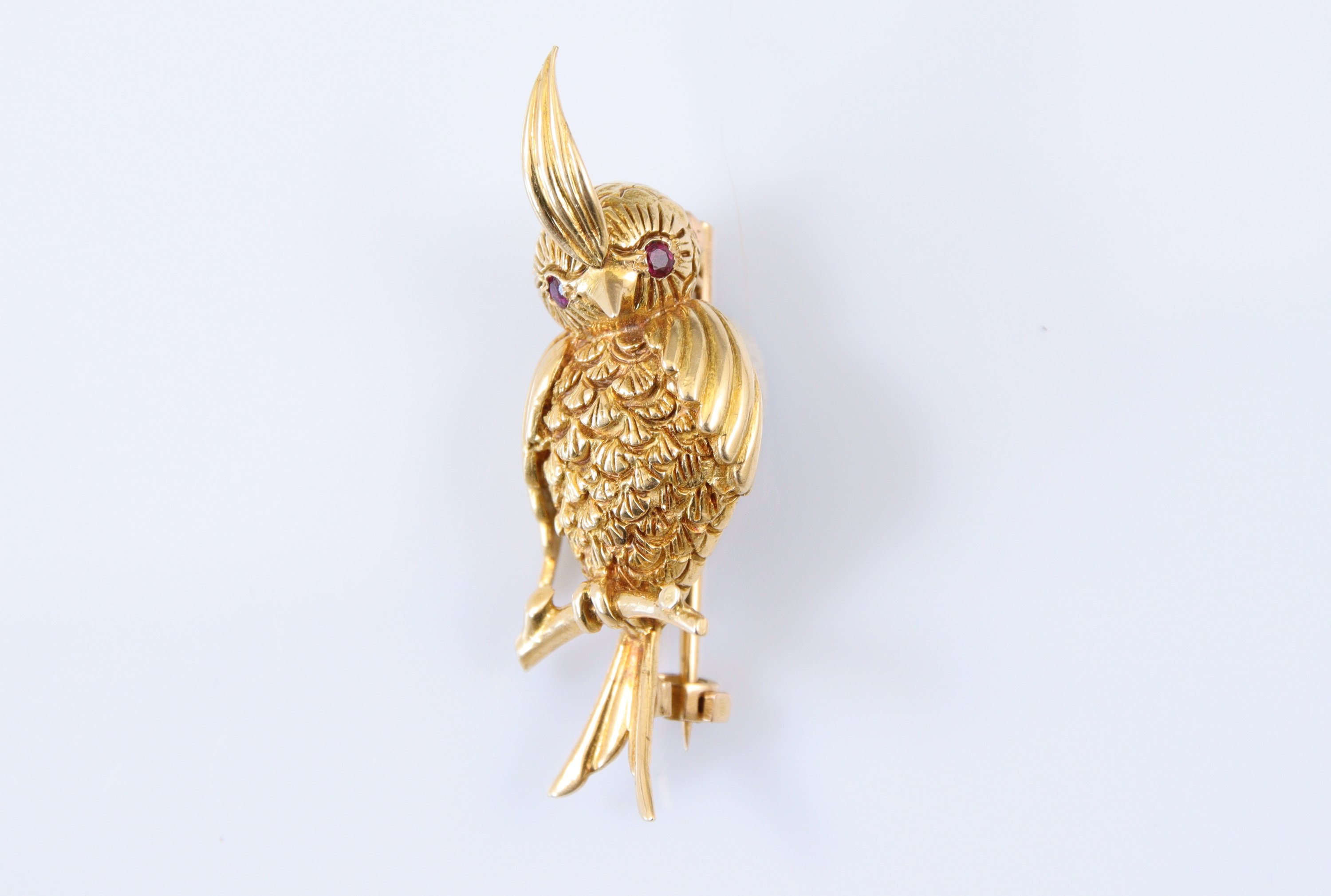 en or jaune 750 millièmes, les yeux en pierre de couleur rouge.