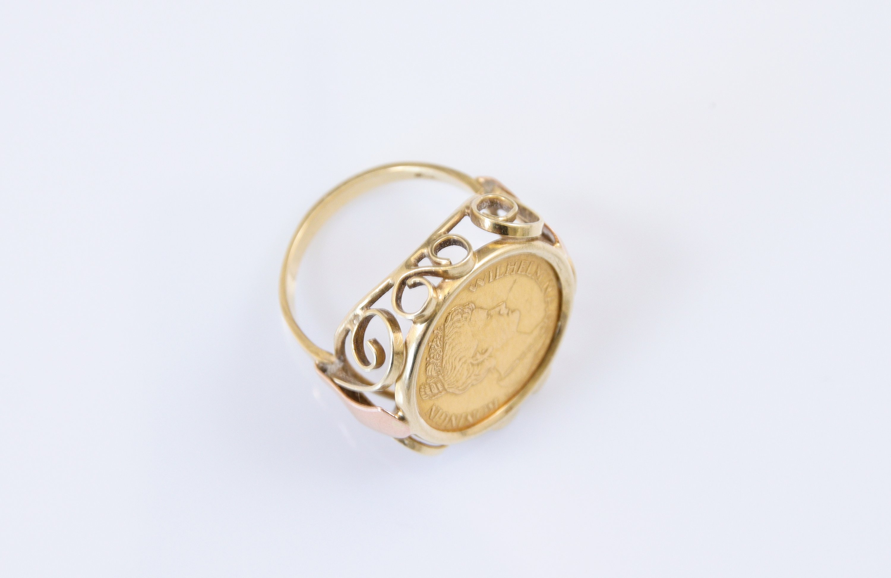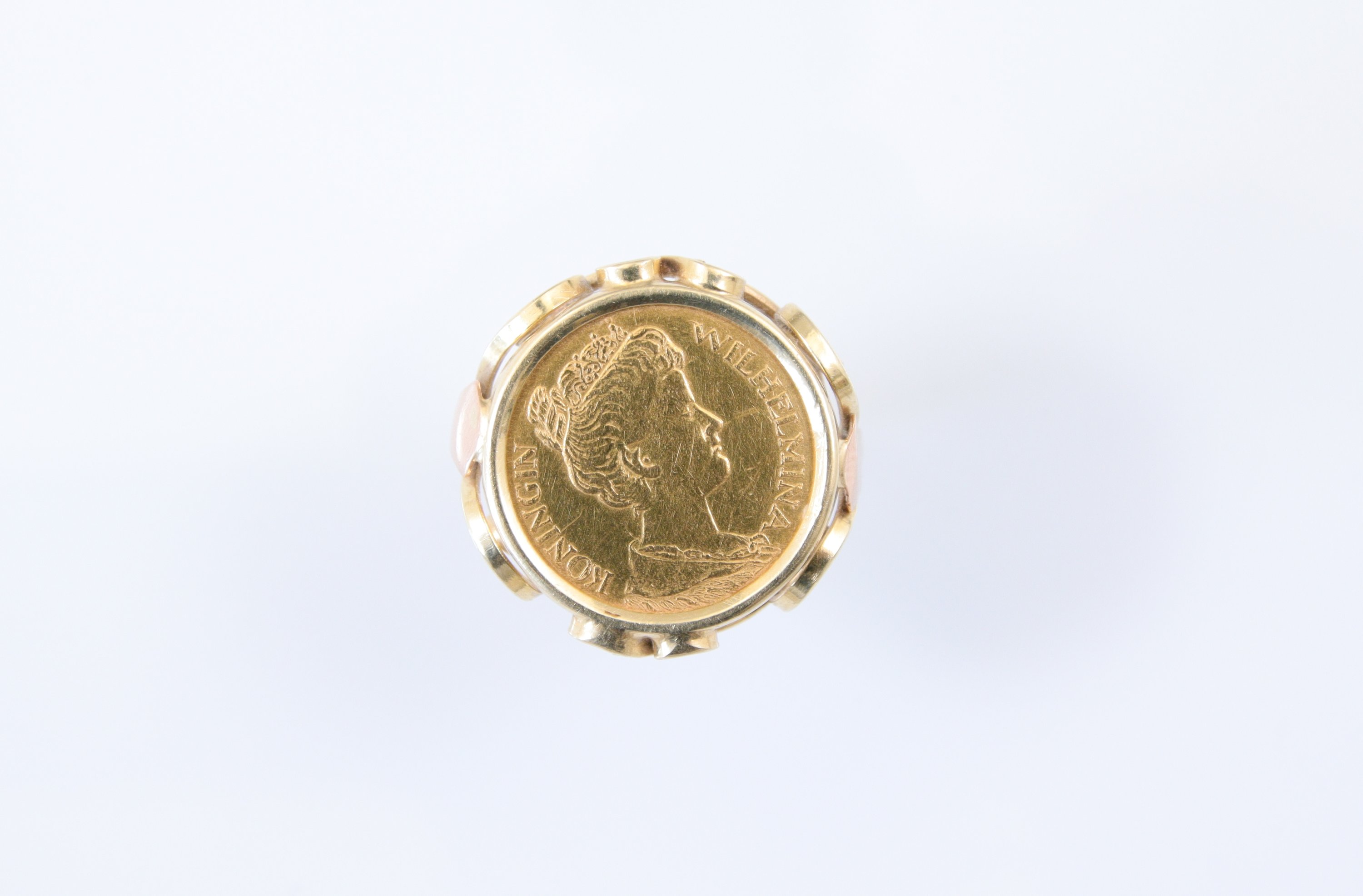 en or jaune et rose 585 millièmes ornée d'une pièces de 5 Gulden or, Wilhemina, 1912.