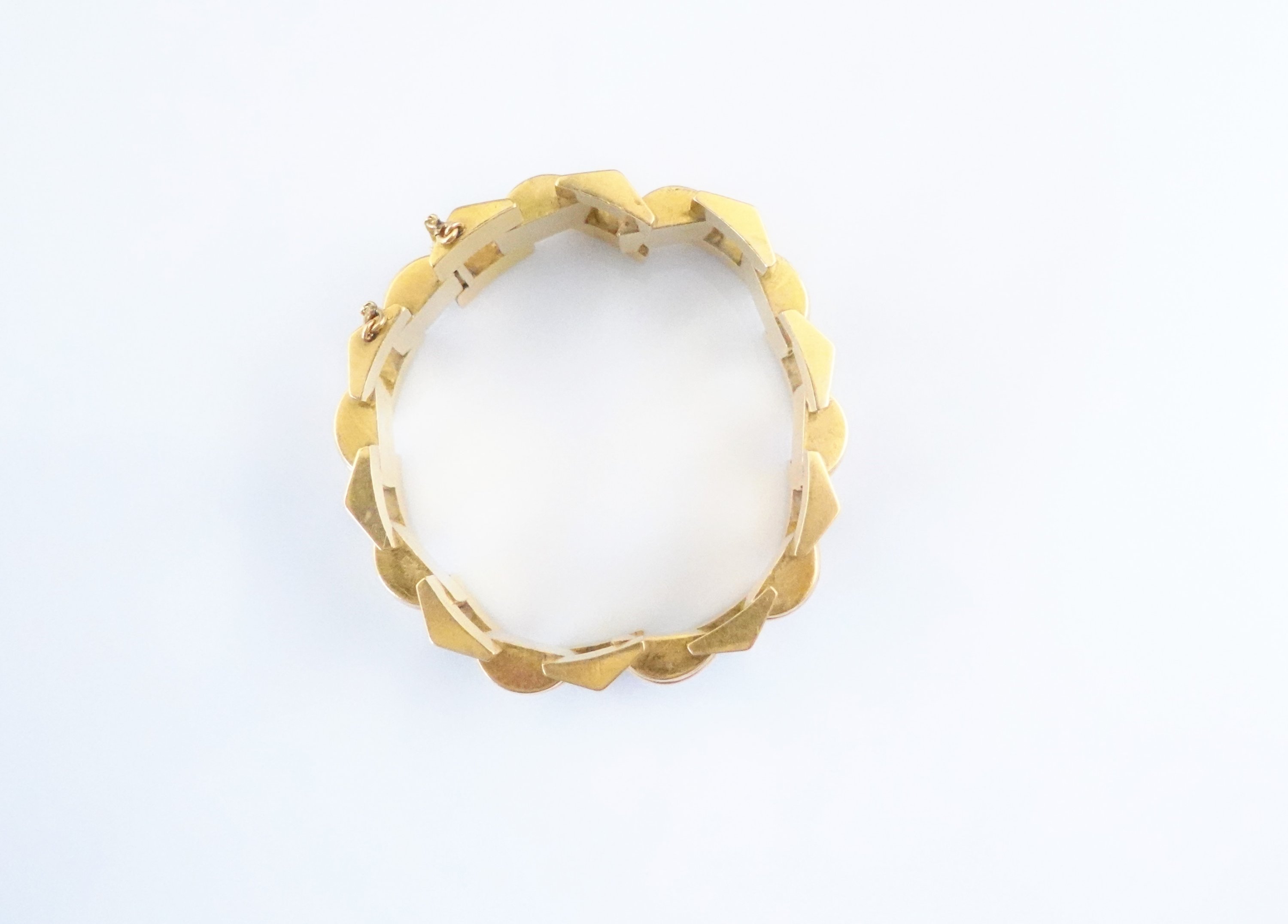 en or 750 millièmes plusieurs tons, jaune, vert et rose. Chaînette de sécurité.