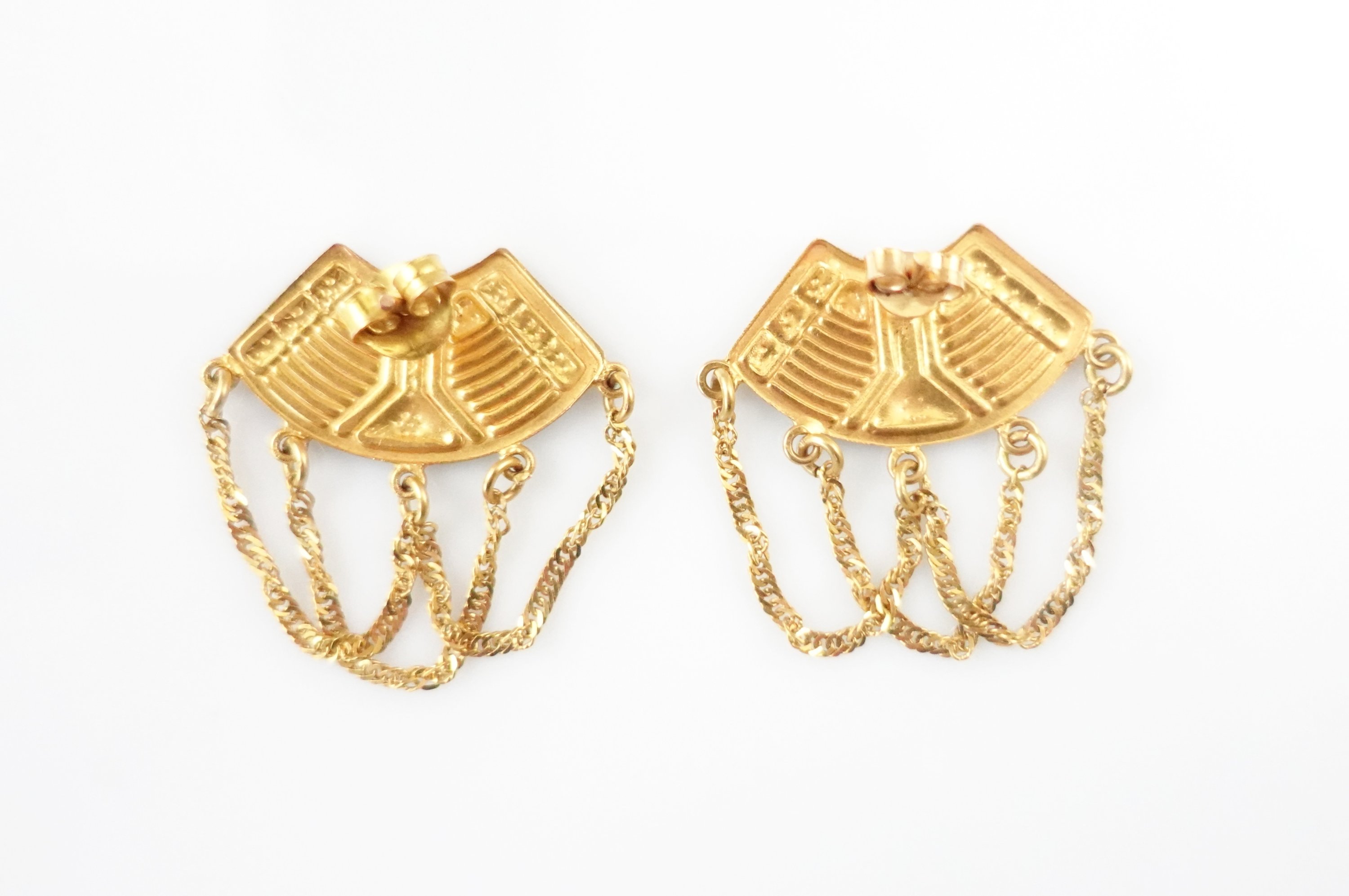 en or jaune 750 millièmes en forme d'arc de cercle à décor de motifs gravés. Avec attache de sécurité.