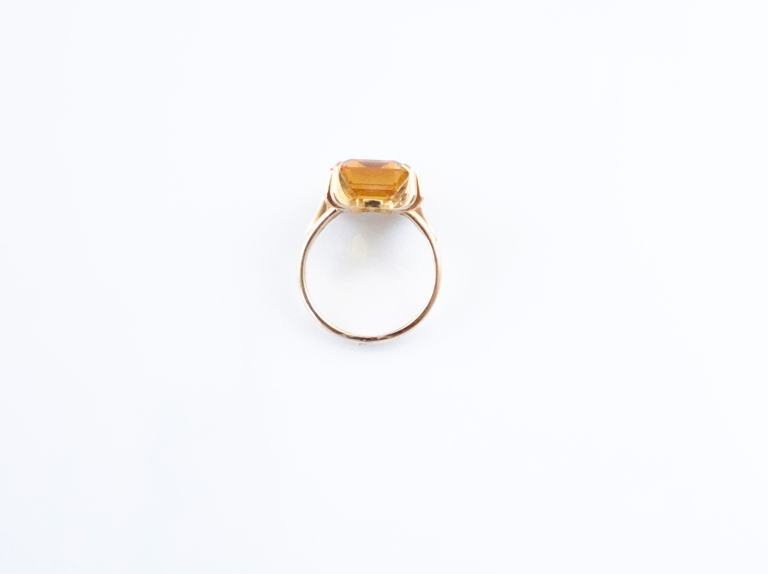en or jaune 750 millièmes sertie en griffes d'une citrine en taille émeraude.