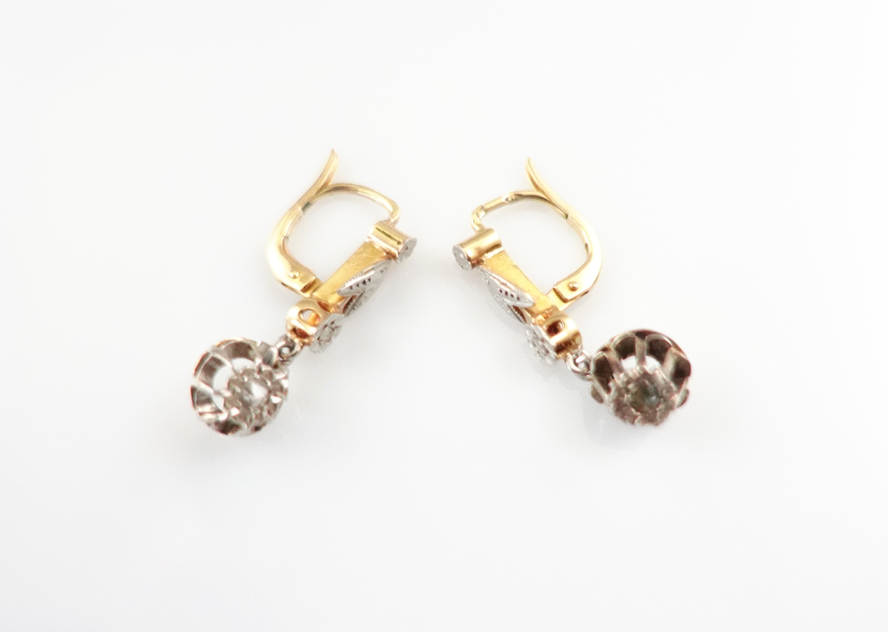 en or jaune 750 millièmes ornée de petits diamants taillés en rose.