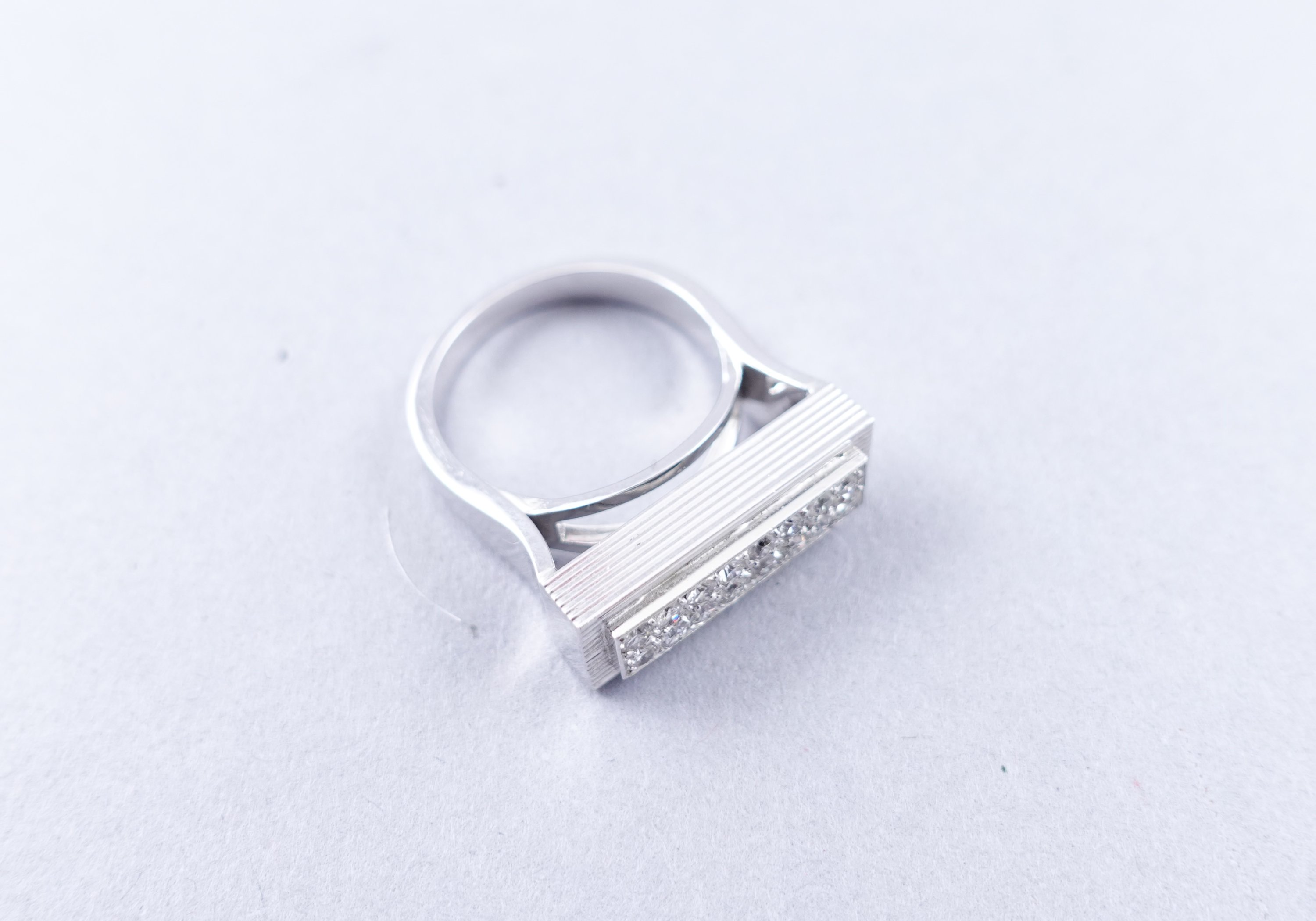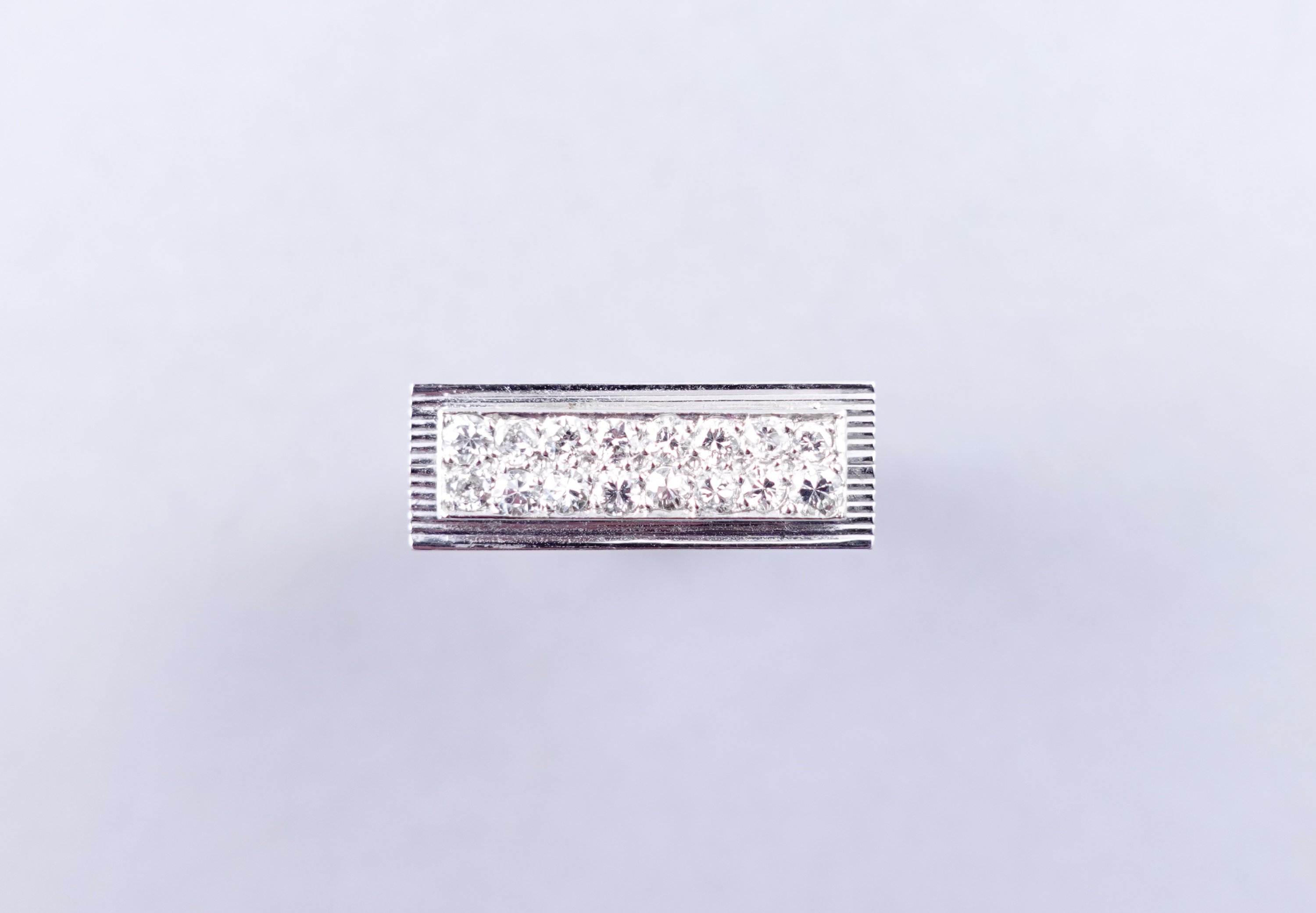 en or gris 750 millièmes de forme rectangulaire sertie de seize petits diamants sur deux lignes.