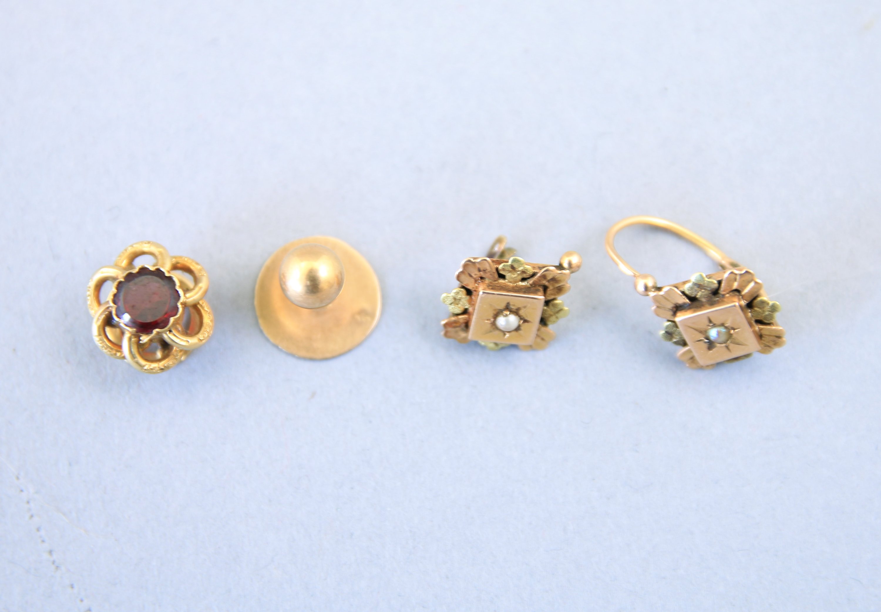 - Un bouton en or jaune 750 millièmes sertie d'une pierre rouge. Poids brut : 1,2 g.