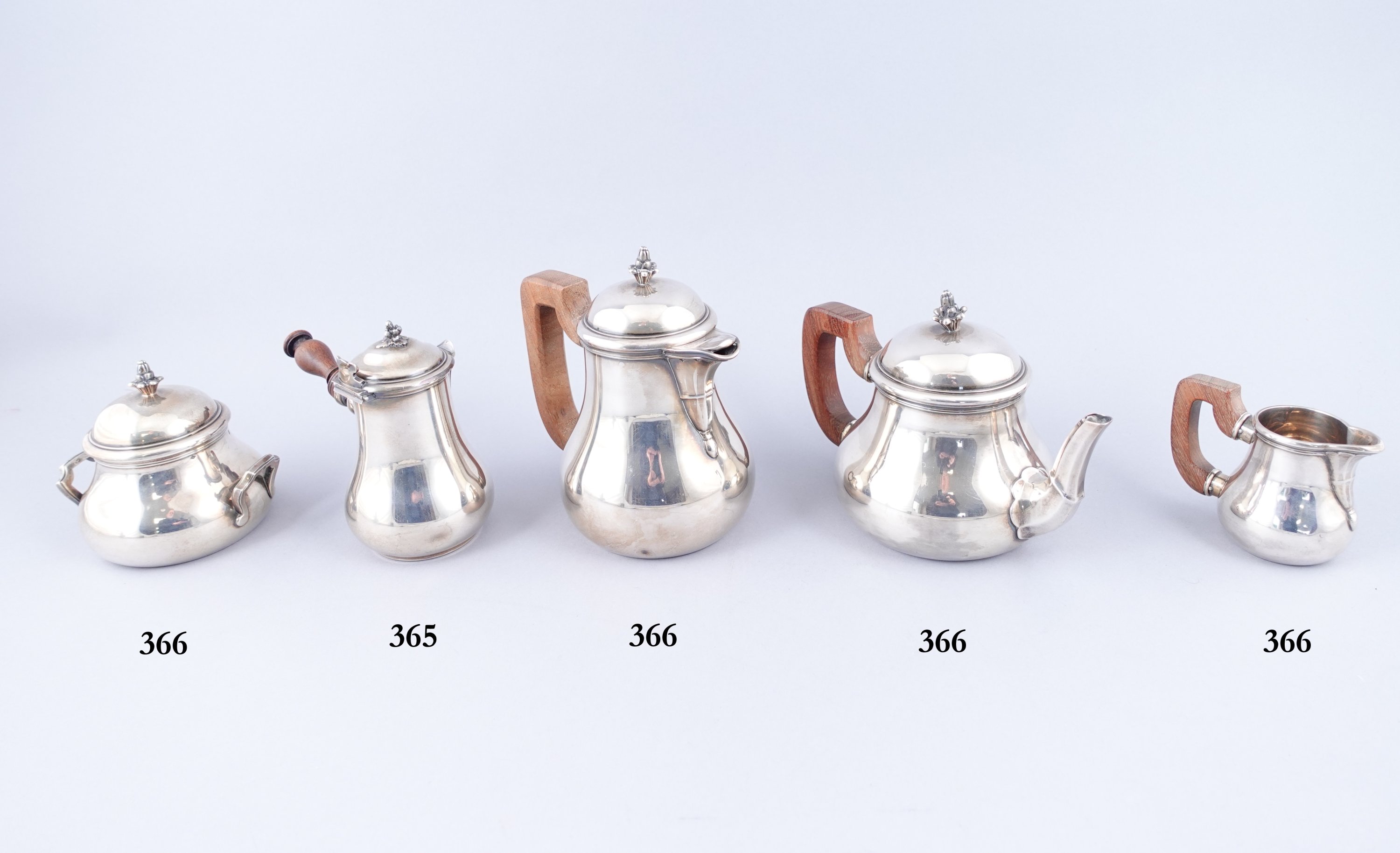 en argent à couvercle sommé d'un fretel de forme végétal. Anse en bois tourné.