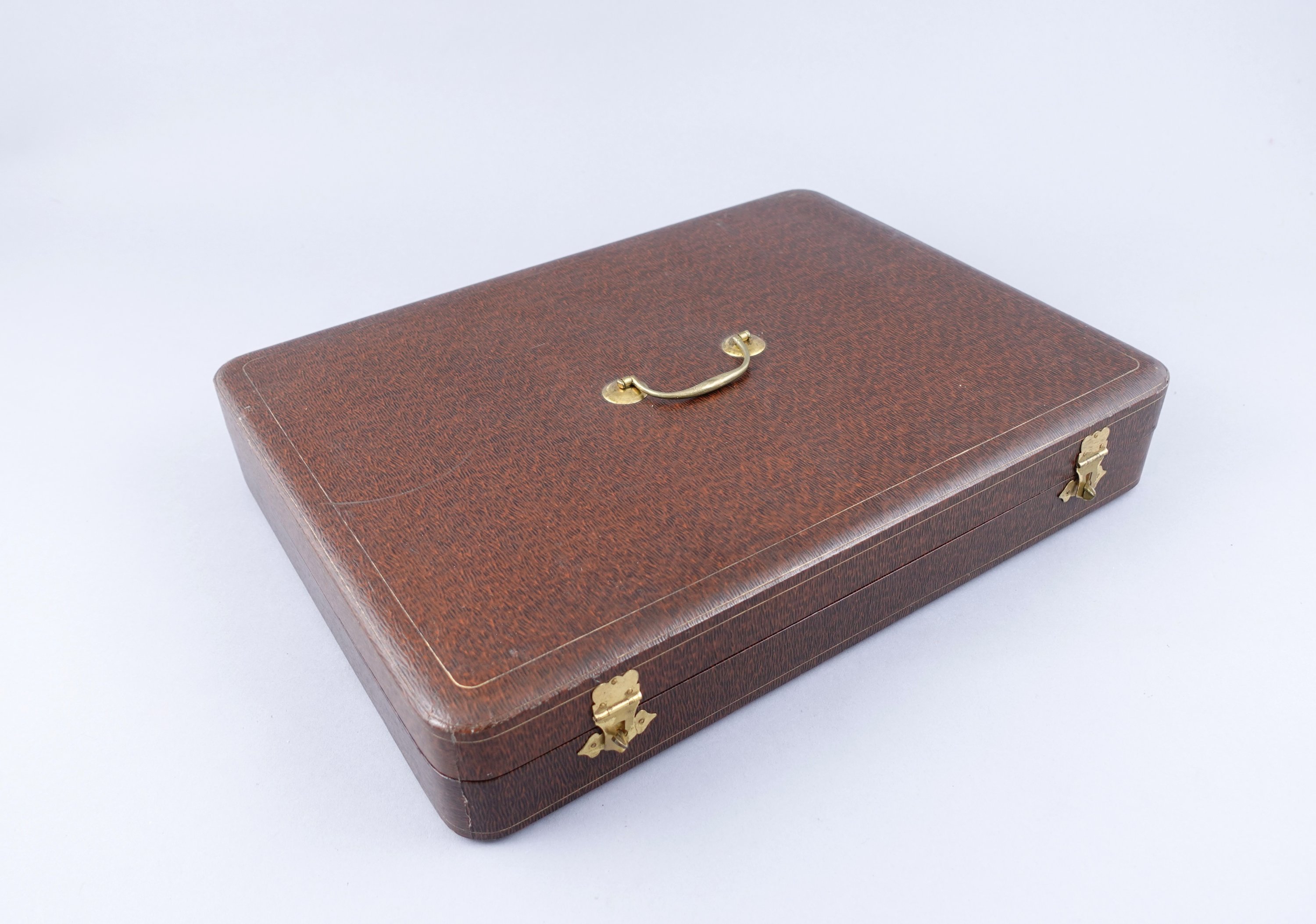 en métal argenté, modèle enrubanné. Elle se compose de douze couverts, douze petites cuillers et une louche.