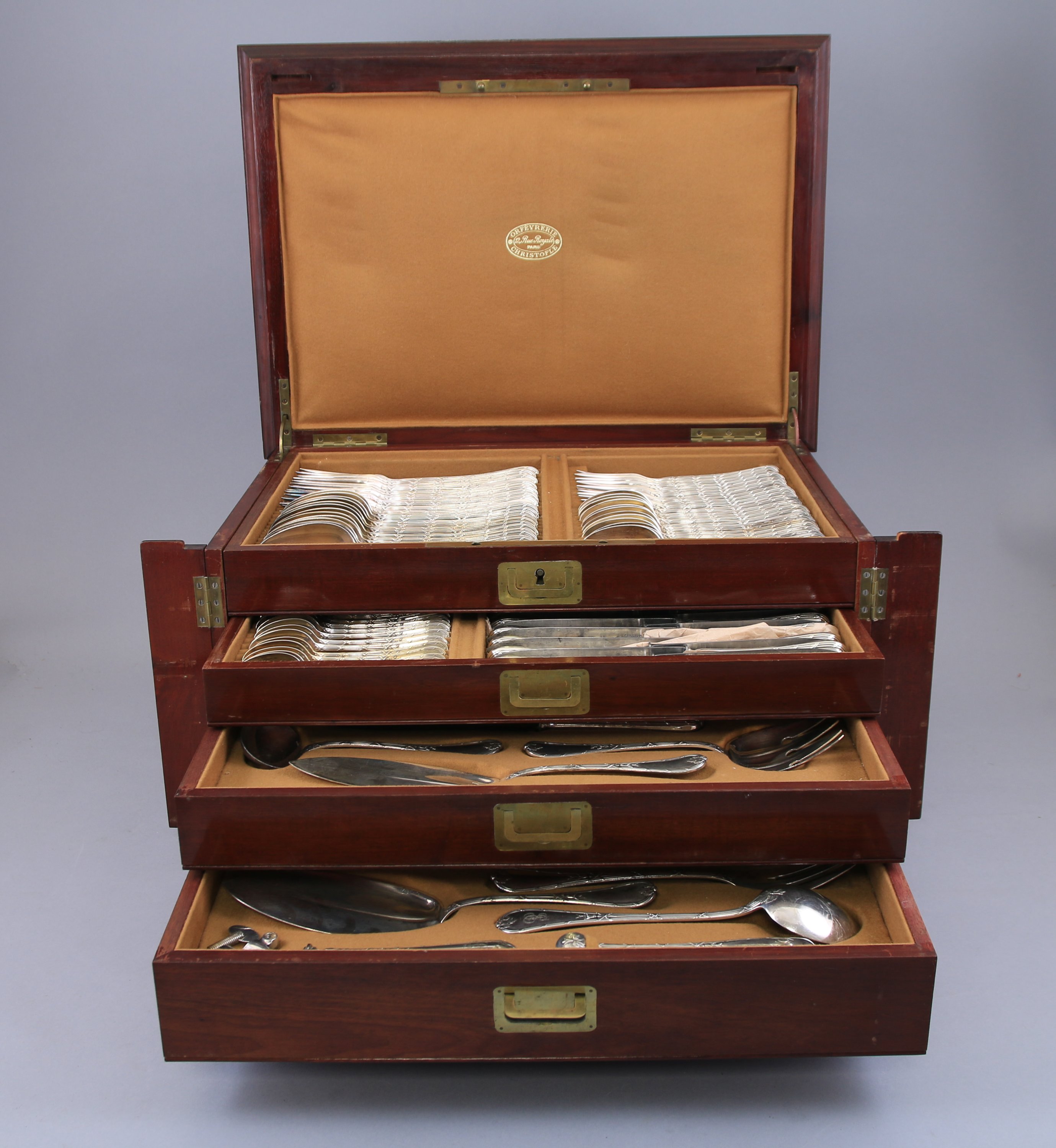 Dans un argentier en acajou à quatre niveaux de la marque.