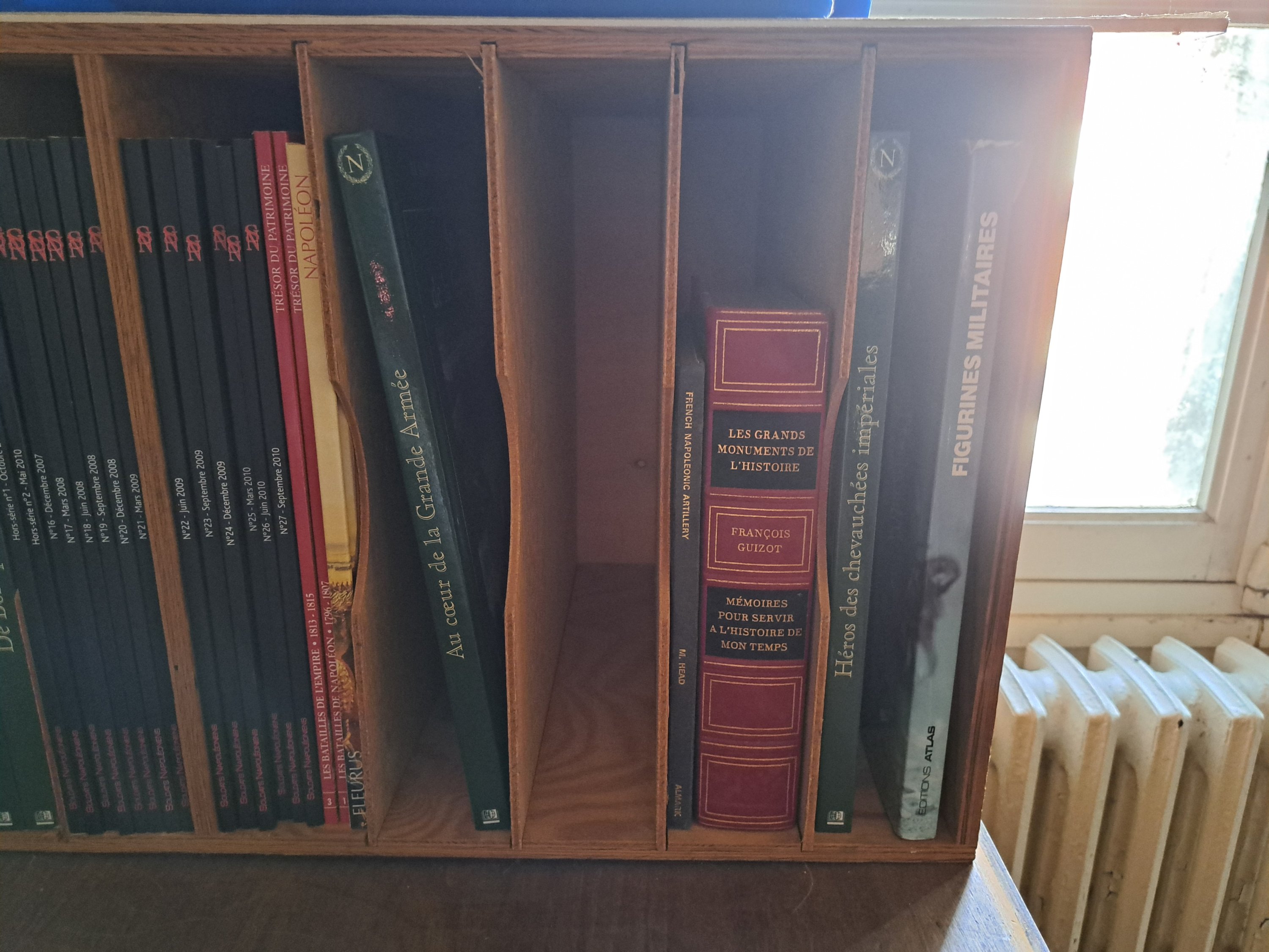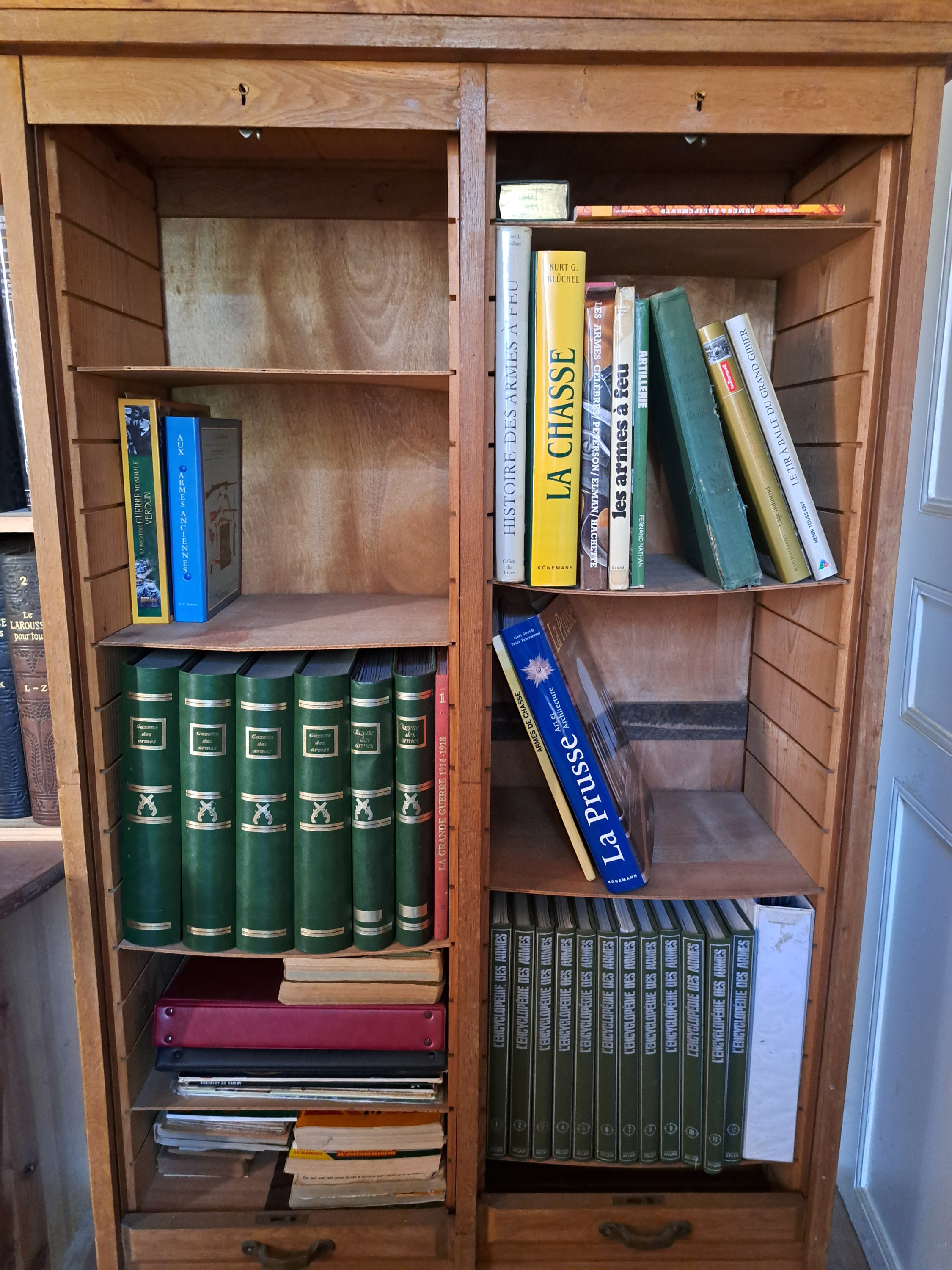 - Quatre bibliothèques de livres divers dont historique (Empire), armes, art, etc.