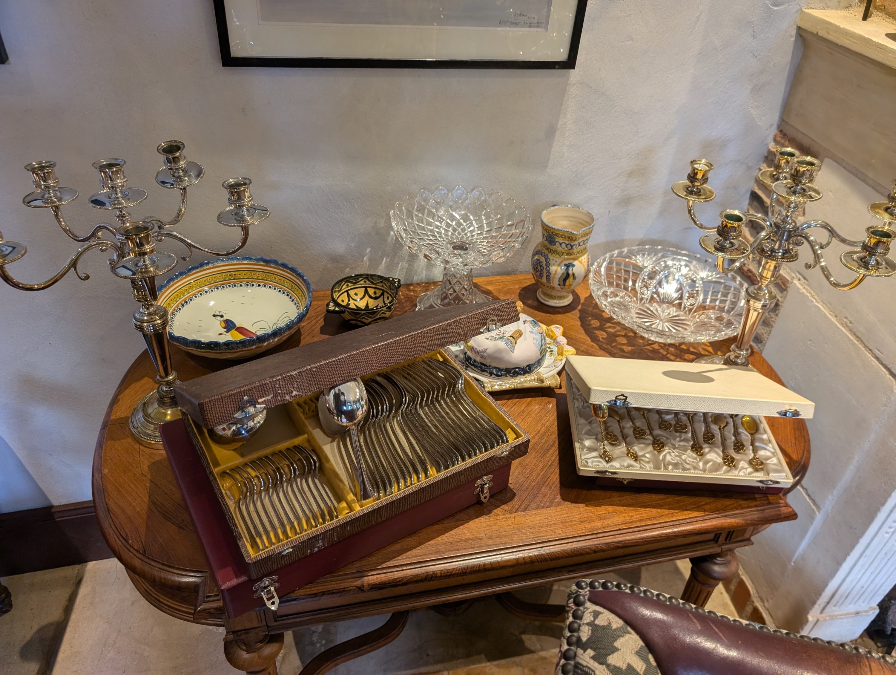 composées d'un pichet, un saladier, bol, coupe à fruits sur pied, coupe circulaire et bol.