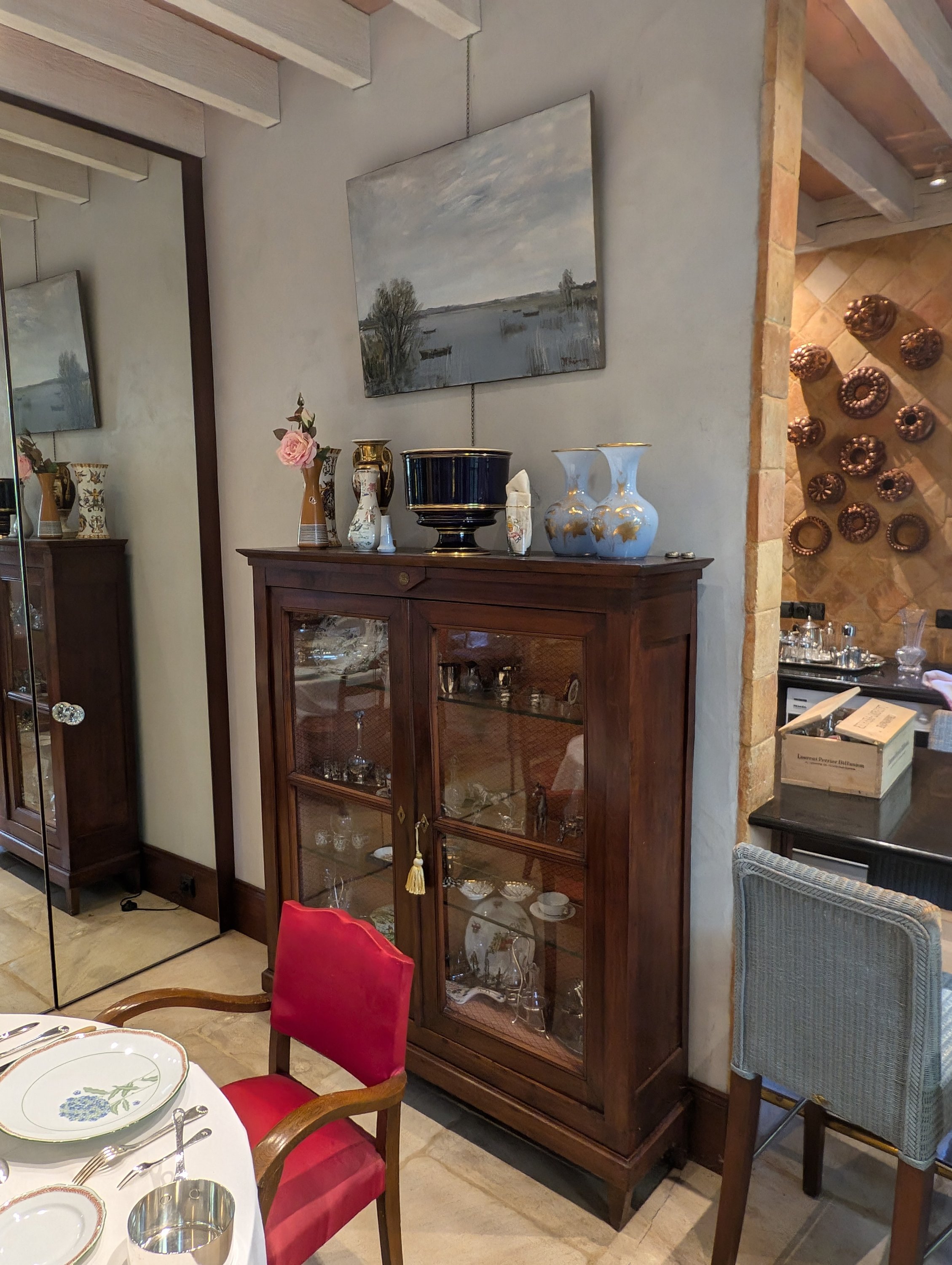 en bois naturel mouluré ouvrant par deux portes vitrées.