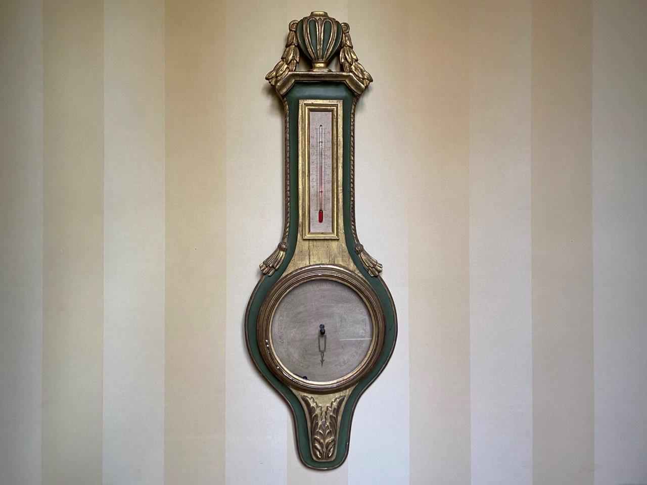 en bois mouluré, sculpté, laqué et doré surmonté d’un vase encadré de deux guirlandes. Travail de style Louis XVI.