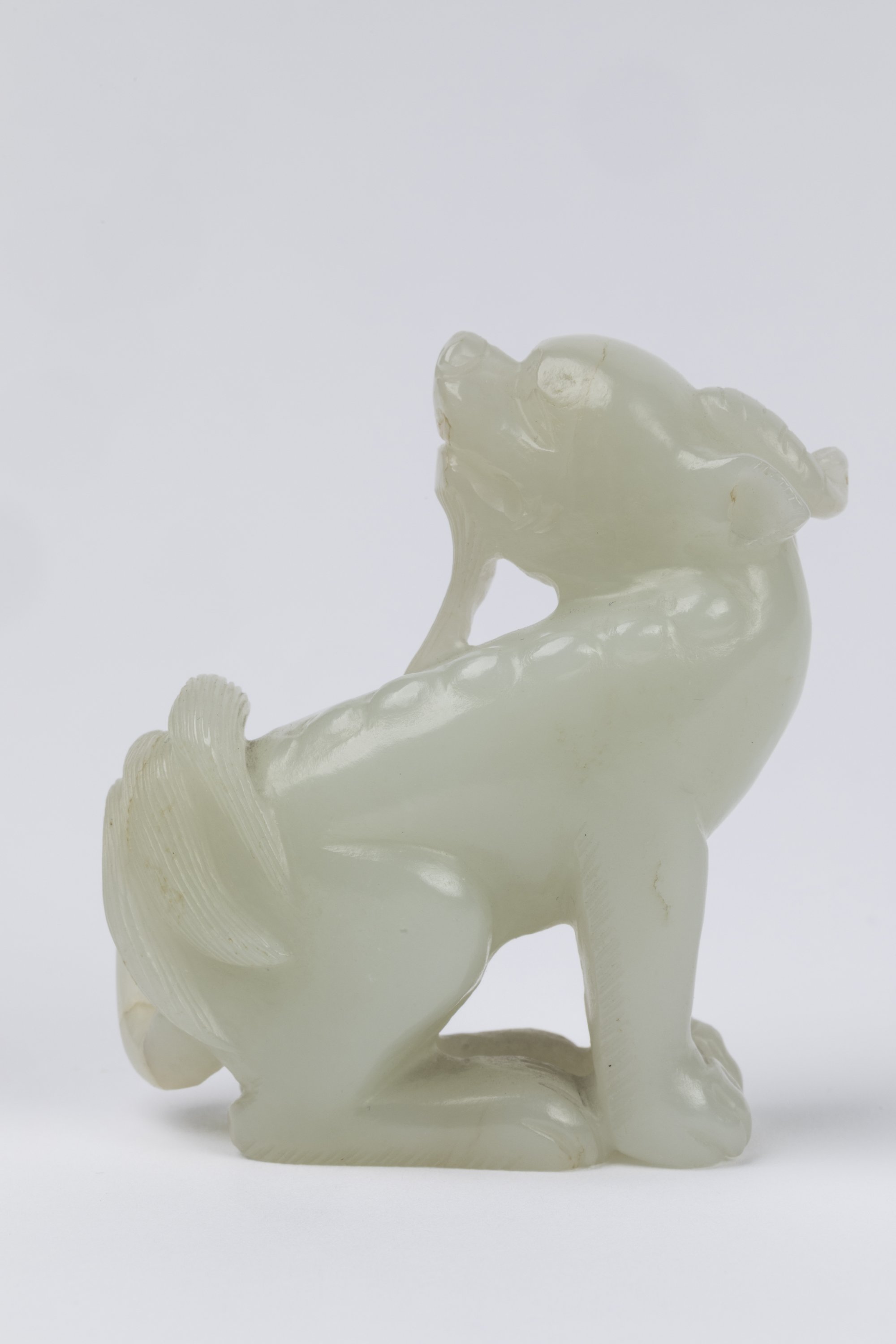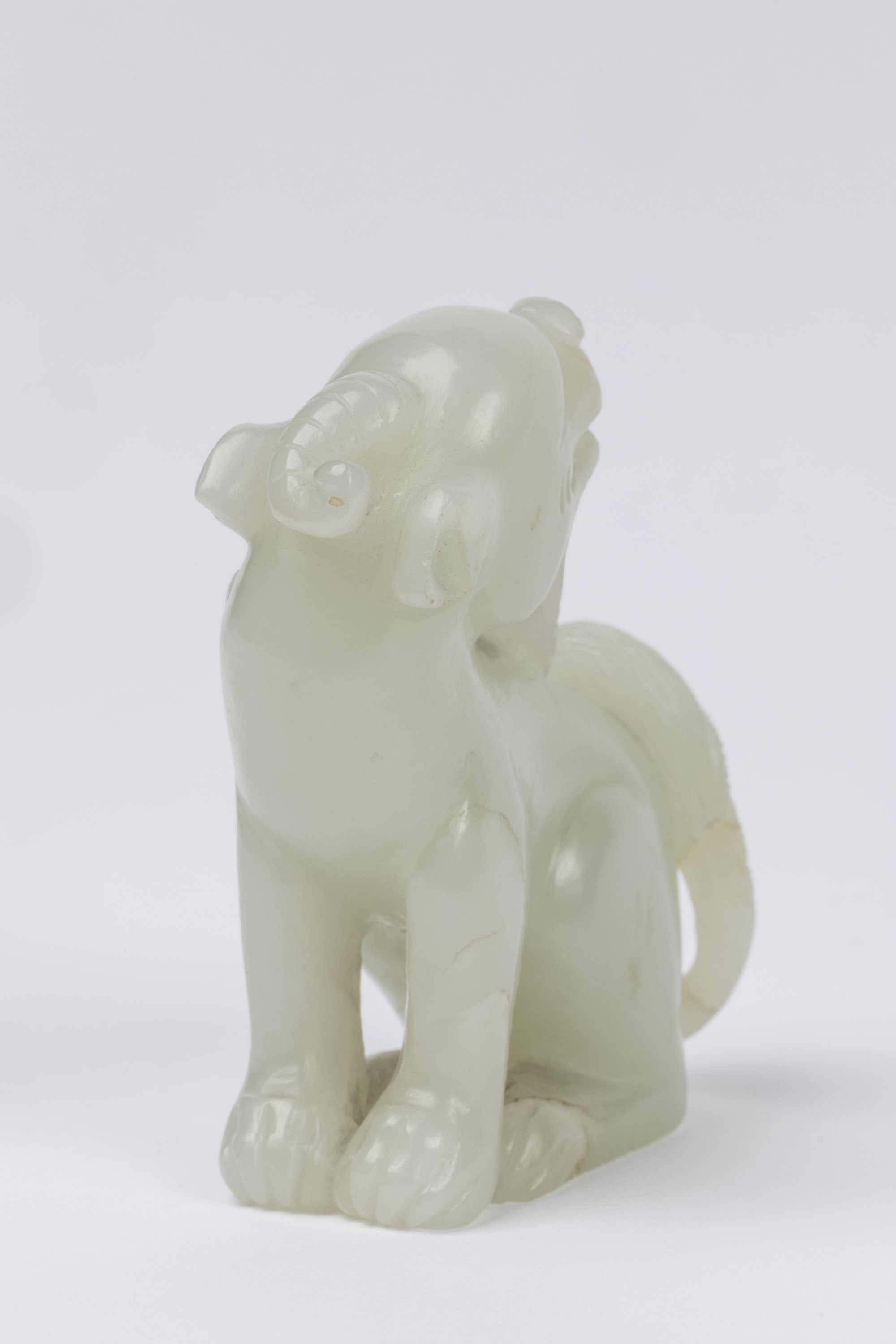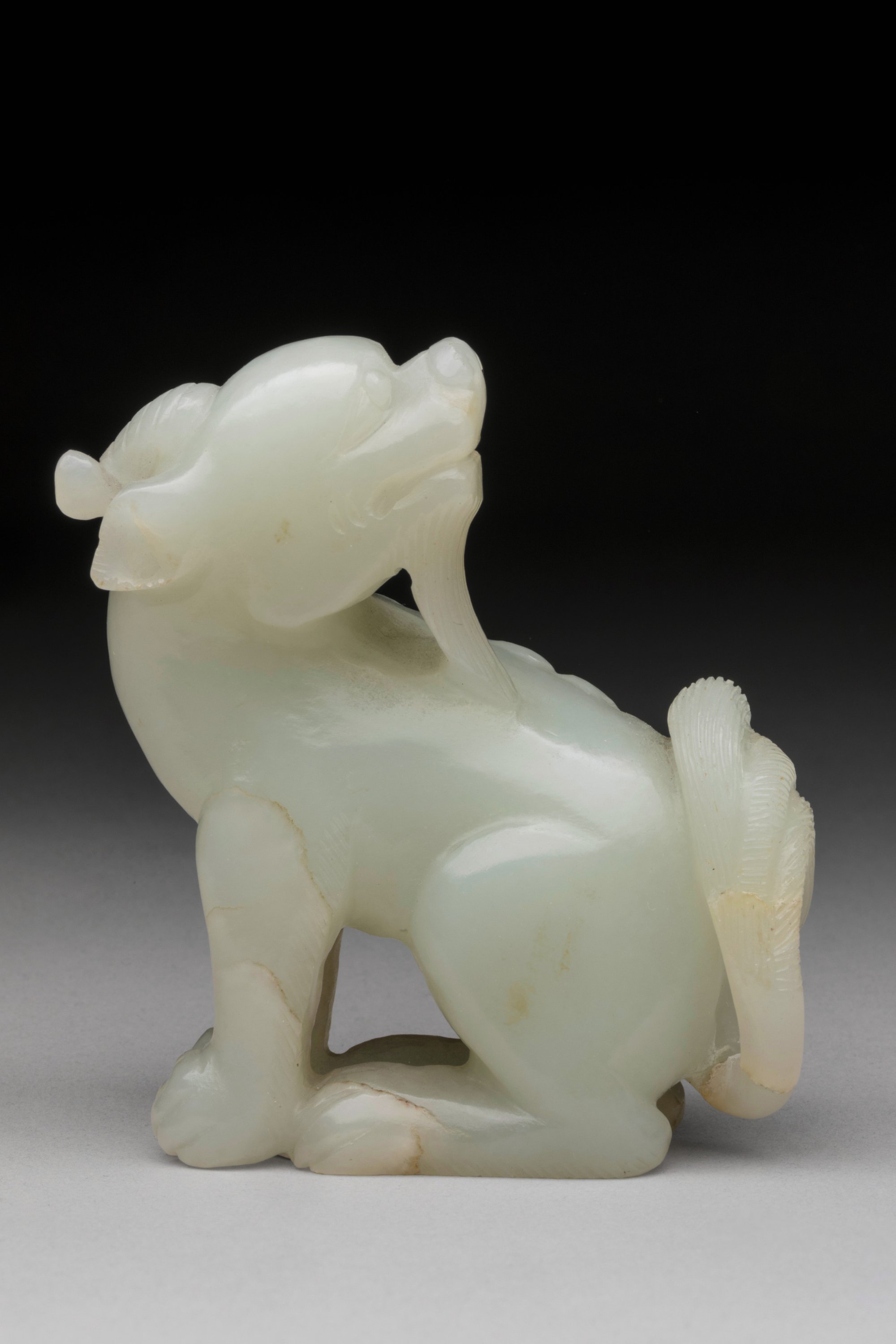 A Chinese celadon jade pixiu carving. Early 20th century.