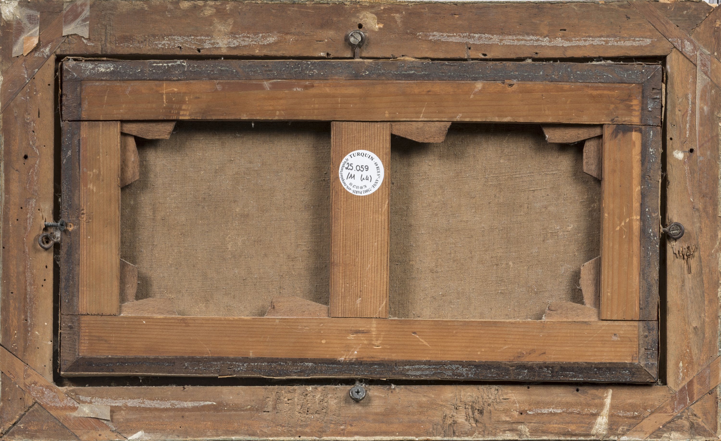 Cadre d'origine, en bois mouluré et laqué vert et or.