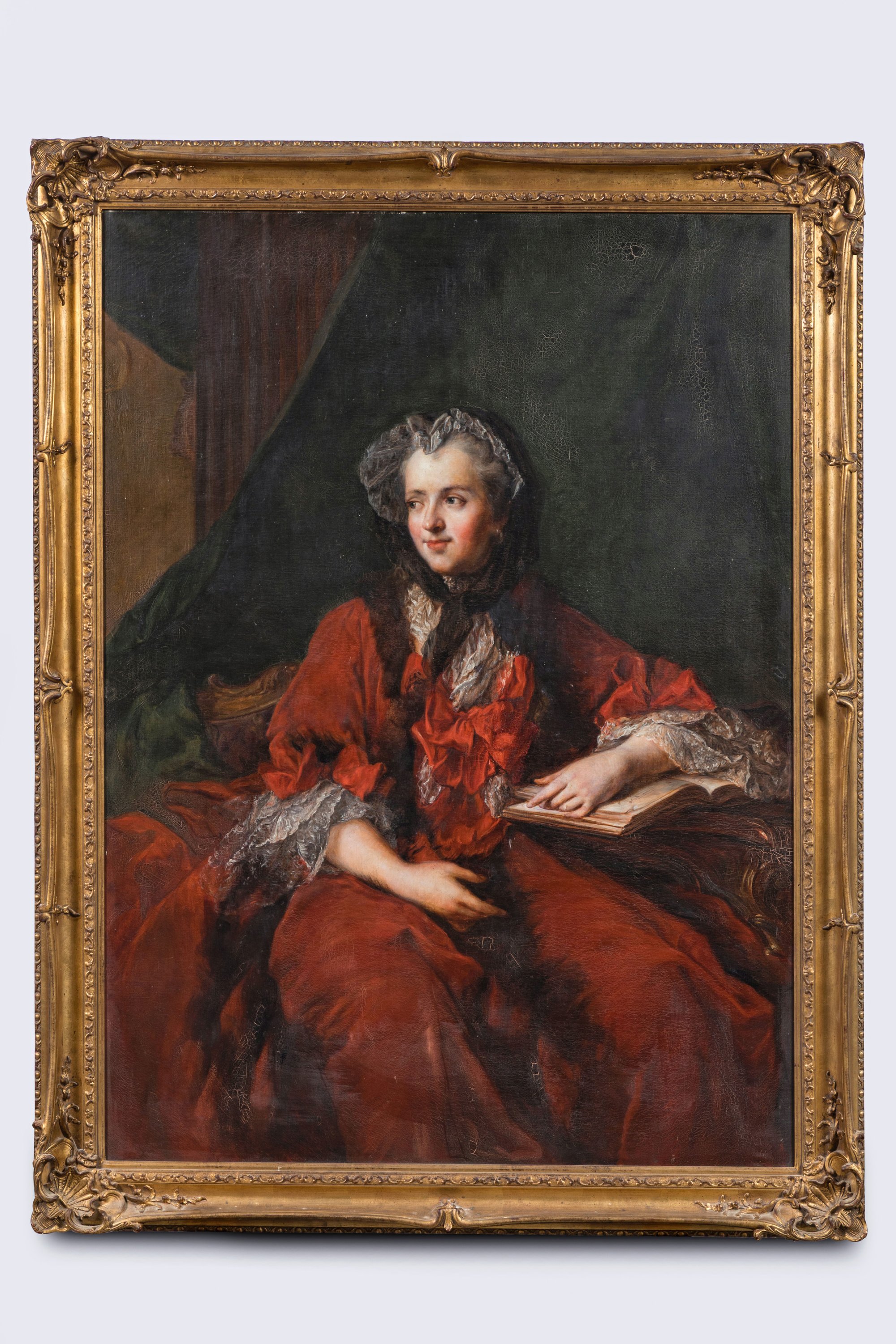 A portrait of Marie Leczinska, Queen of France after Jean-Marc Nattier. Oil on canvas. In a giltwood and stucco frame. French School, ca. 1900.
