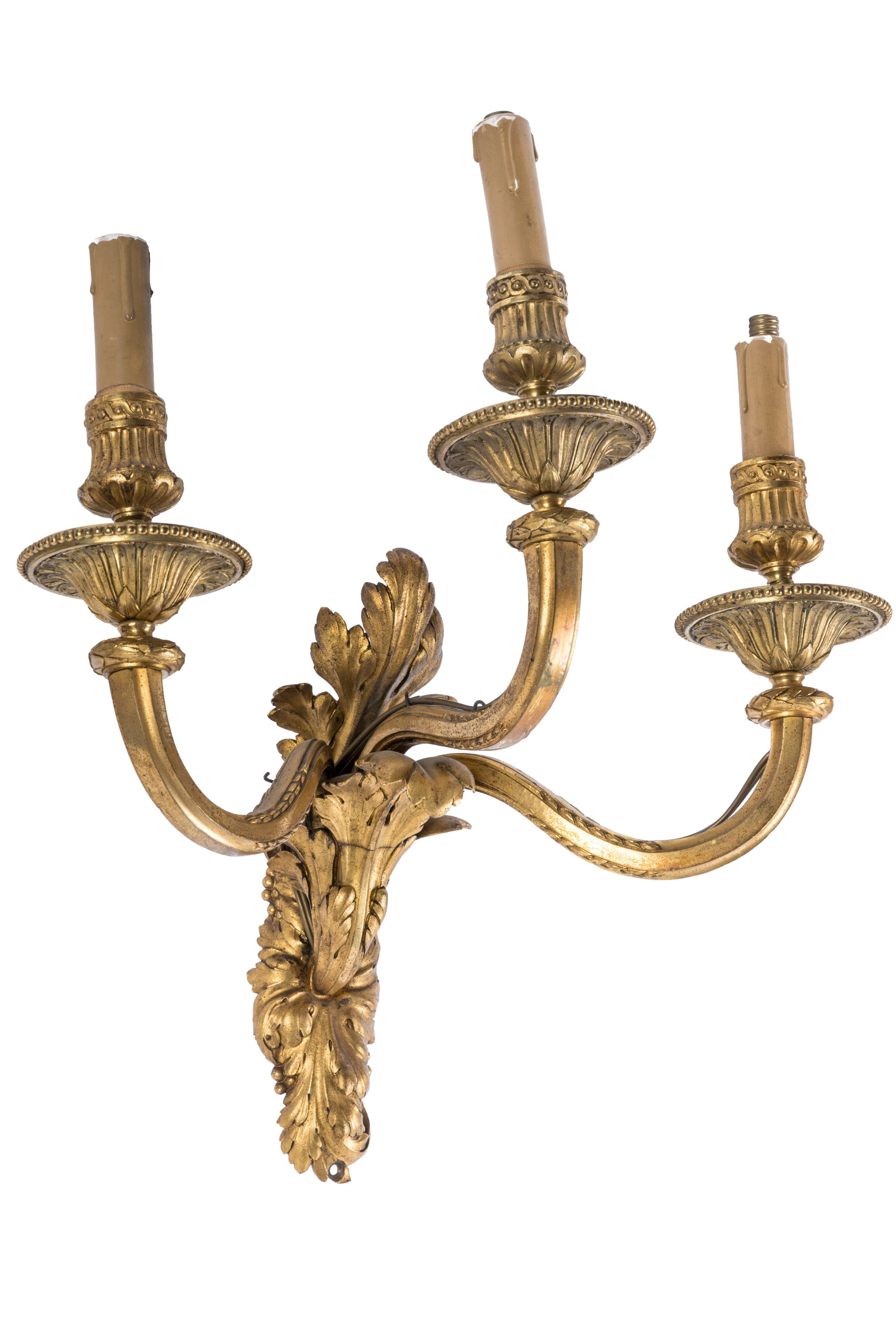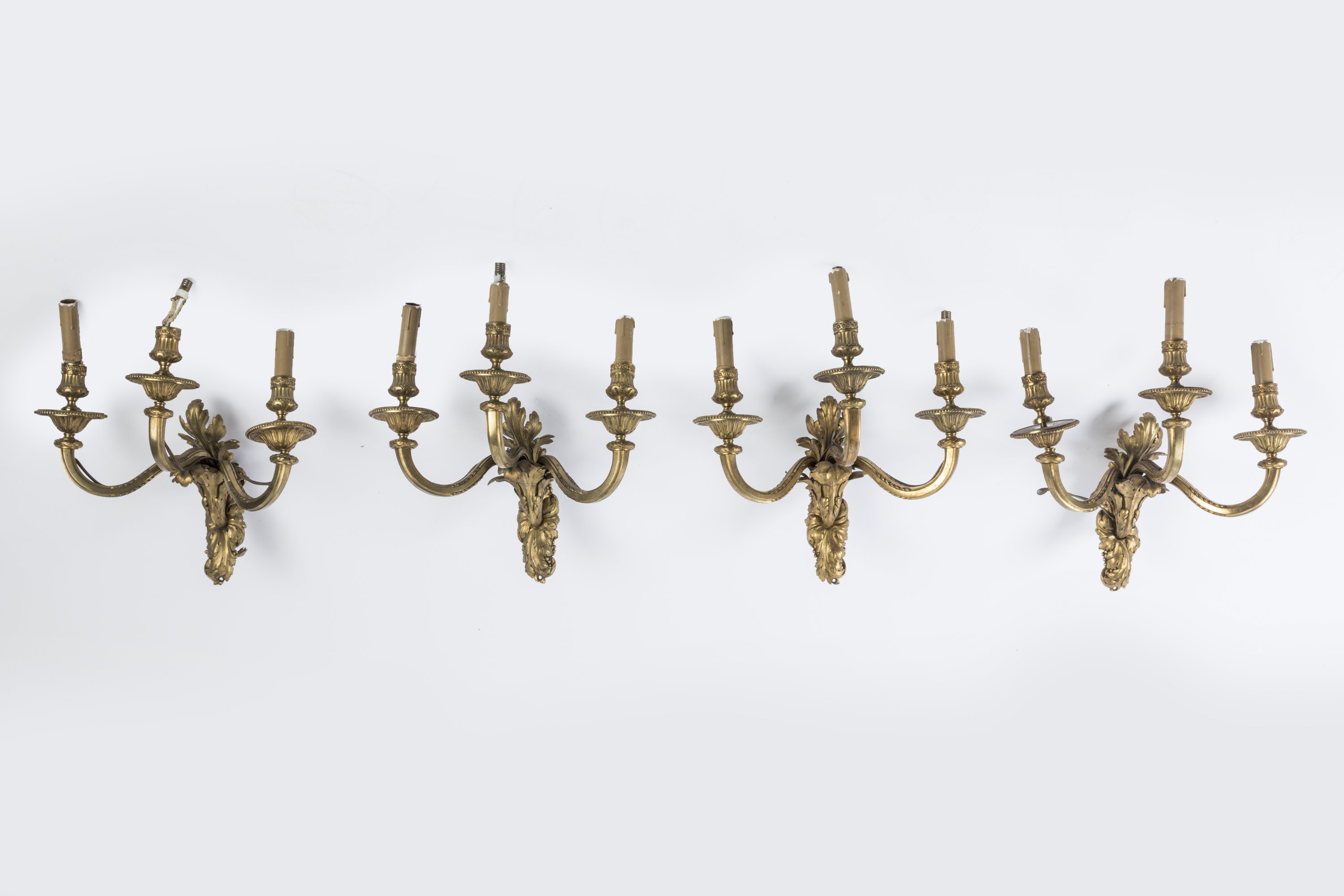 A set of four chiseled ormolu wall sconces. Louis XVI style.