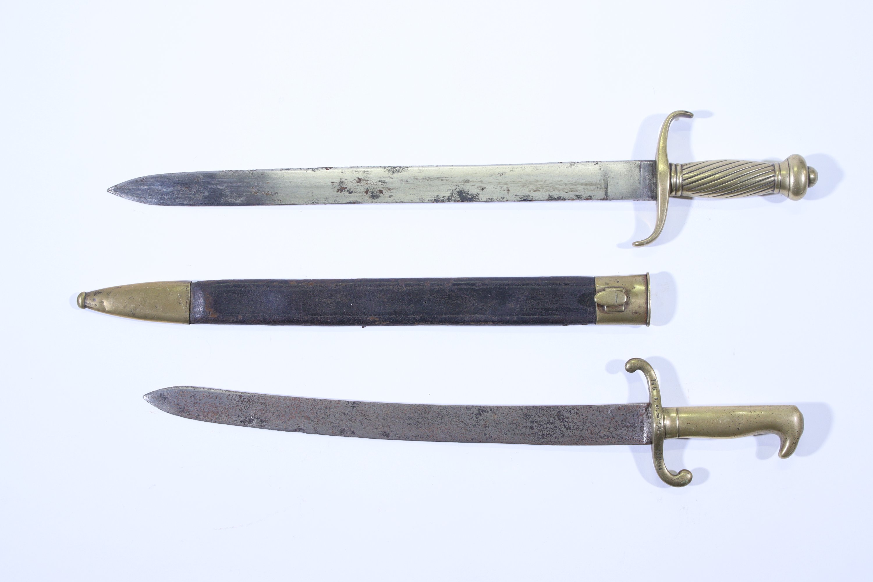Monture en bronze datée 54. Monture et fourreau matriculés 8R.845 (et 90). Lame poinçonnée GWB. Long. 61 cm.