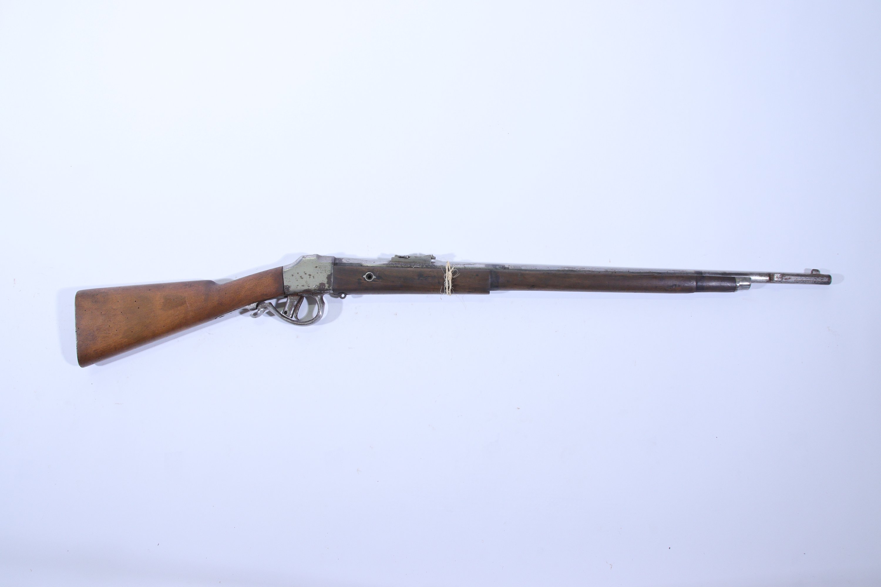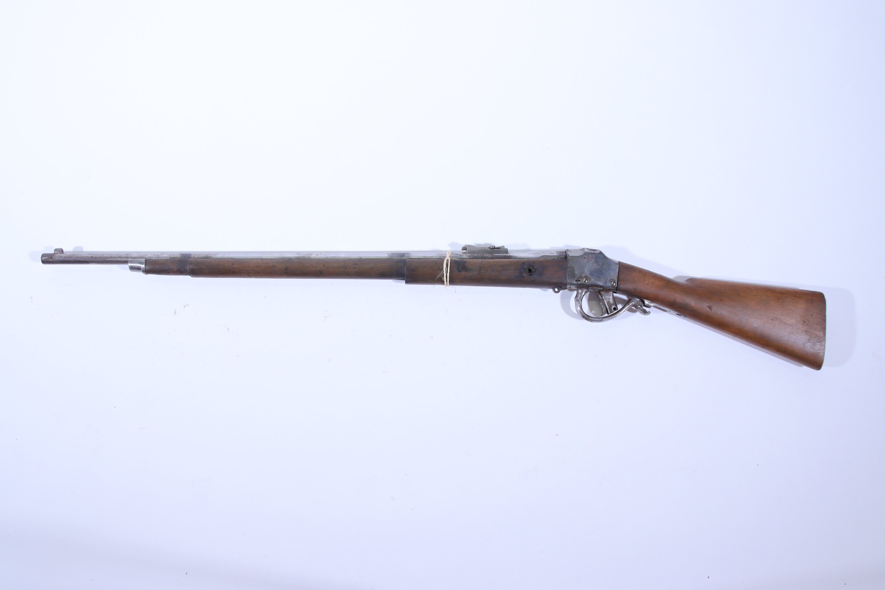 Canon rond à pans au tonnerre avec hausse, boîtier de culasse marqué.