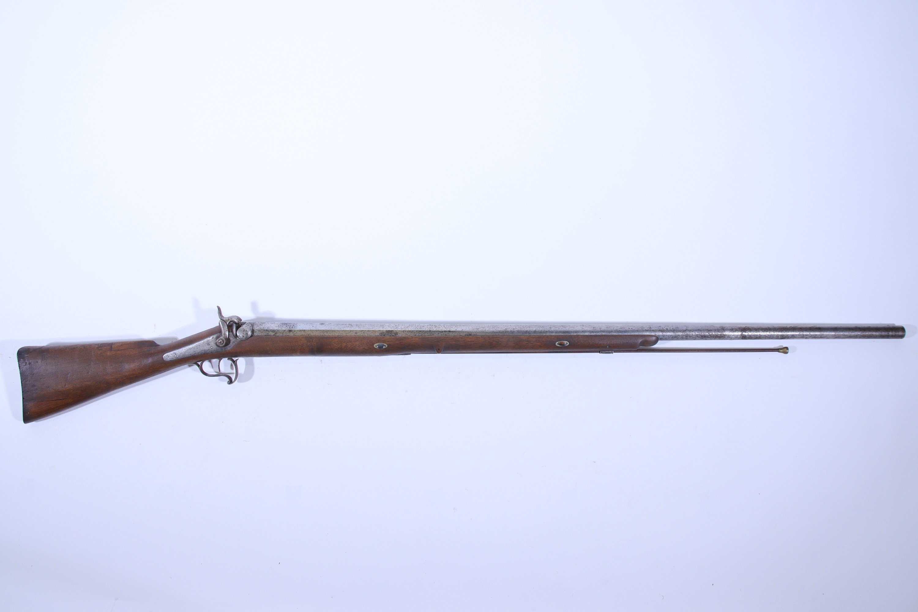 Garniture en fer, crosse en noyer (petites entures et usures), baguette en bois à embout laiton.