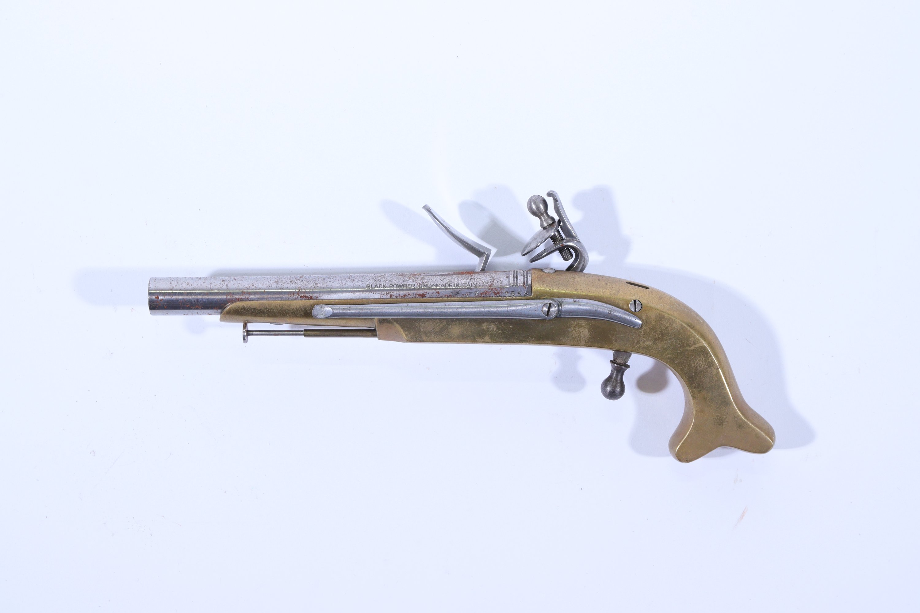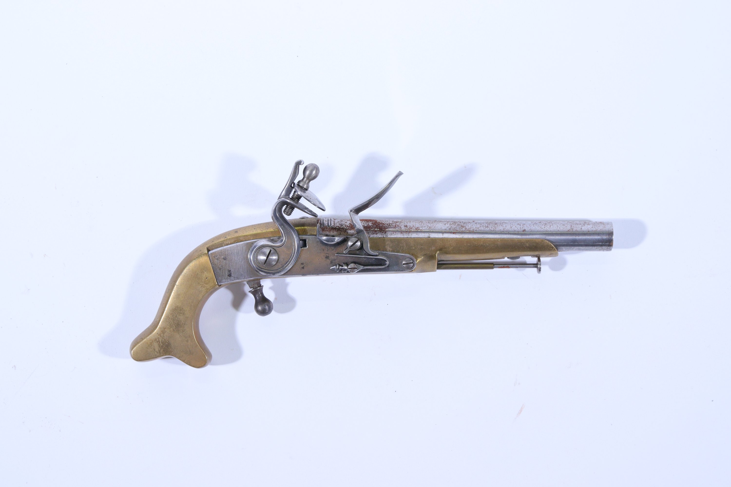 Canon rond. Platine et chien à corps plat. Crosse en laiton.