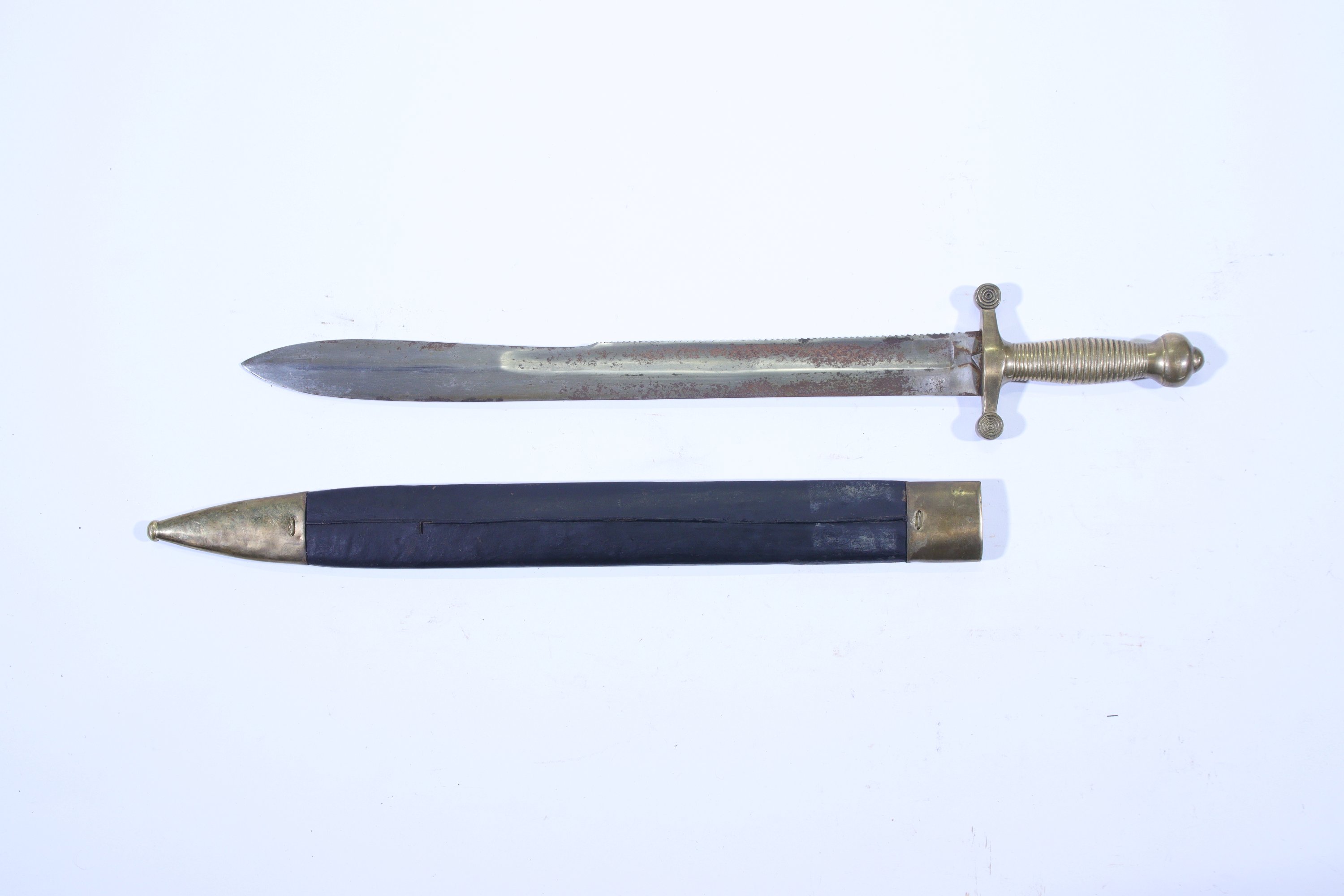 Fourreau postérieur recouvert de cuir à deux garnitures en laiton.