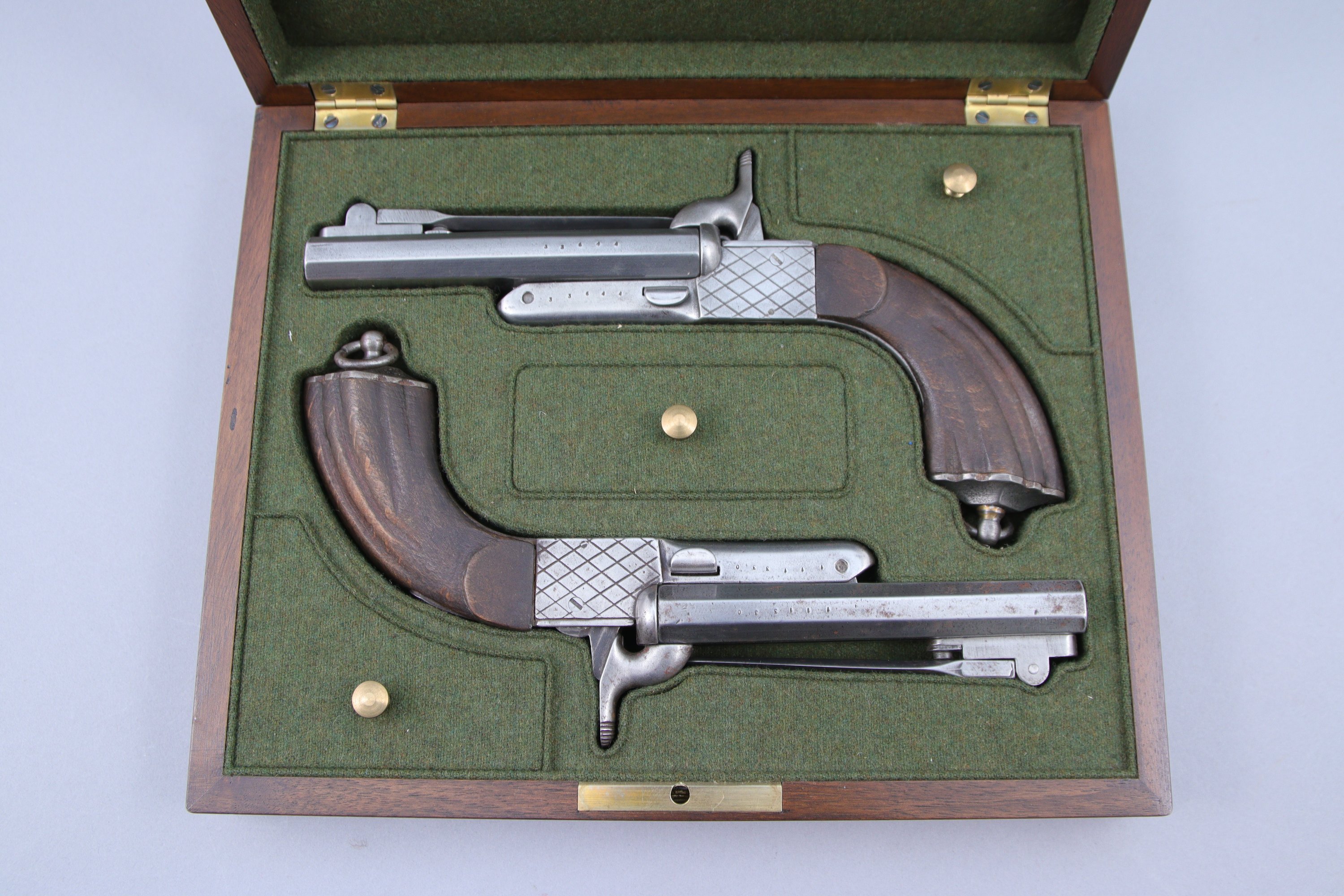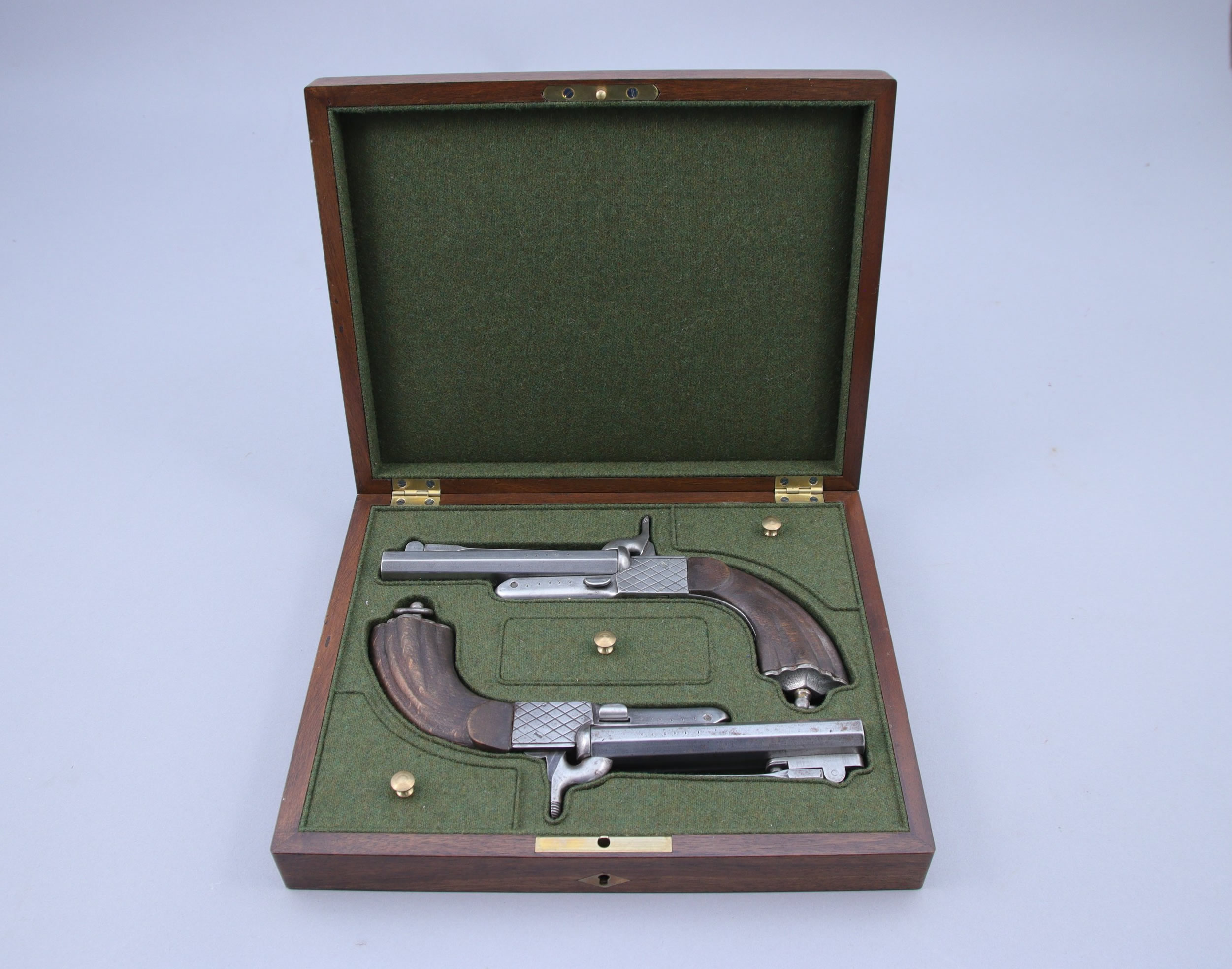 Paire de pistolets à coffre à broche, à baïonnette, ?? coup, calibre ?? mm.