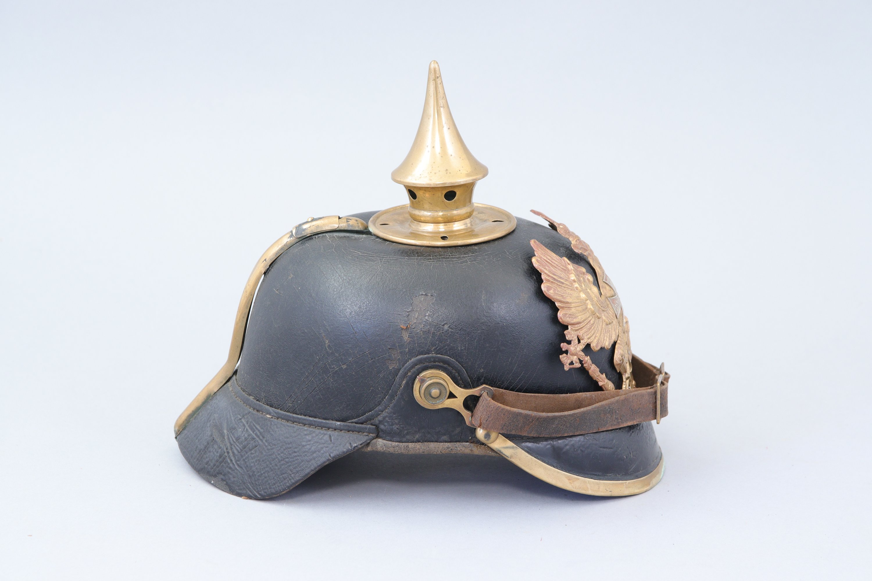 Joint : une coque de casque modèle 1895 avec pointe et plaque de réserviste. Marquage 61.J.R 1902.