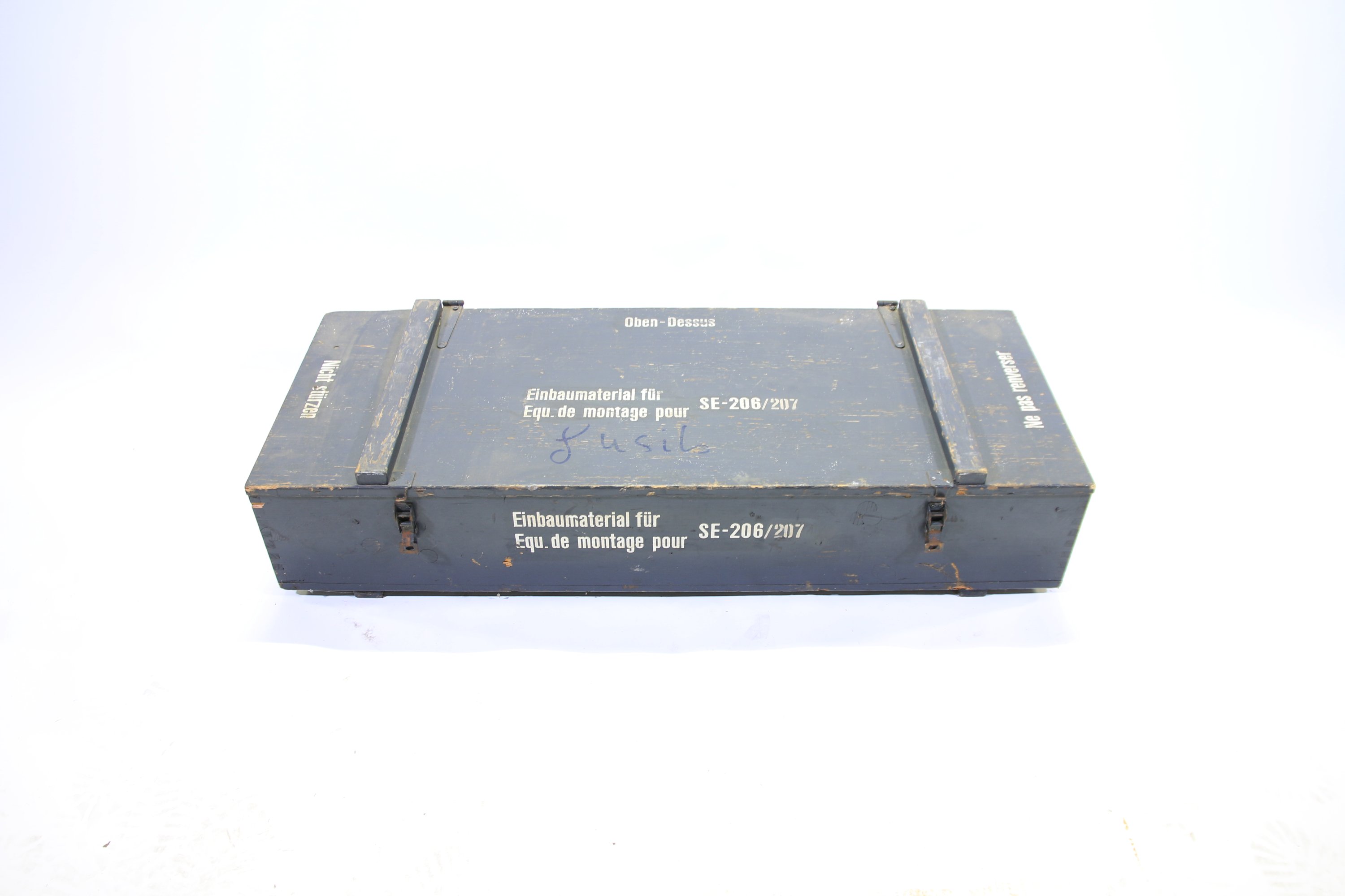 L’ensemble contenu dans une caisse de munitions suisse.