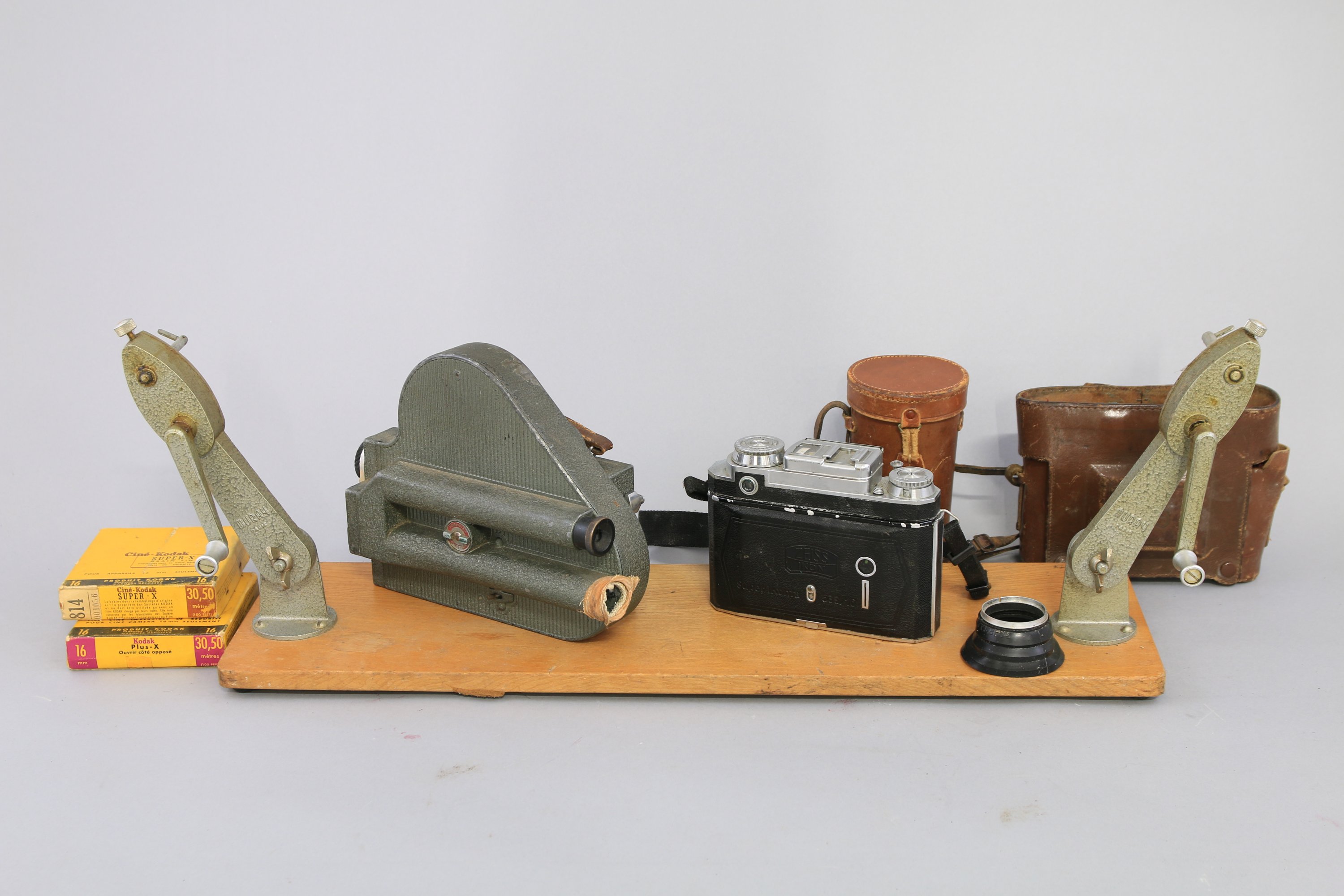- Equipement divers pour photos dont oeilleton, objectifs, micro, visionneuses, bobines de film en 16 mm, enrouleur, dérouleur de film, etc.
