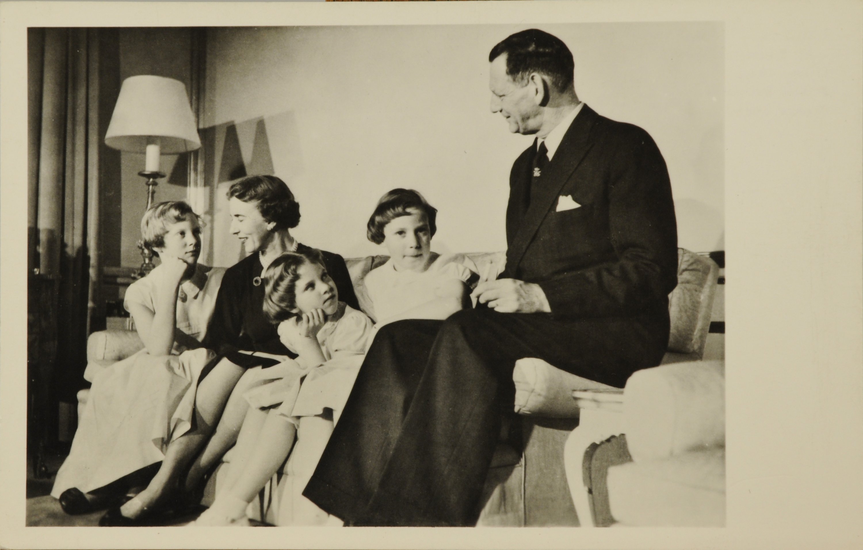 - Le Roi Frederic IX, la Reine Ingrid et les princesses Margrethe, Benedikte et Anne-Marie enfants. Vers 1950. 9 x 13,5 cm.