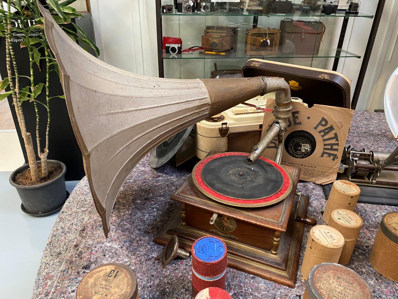 Collection de rouleaux de cire, gramophone Pathé, phonographe, etc.