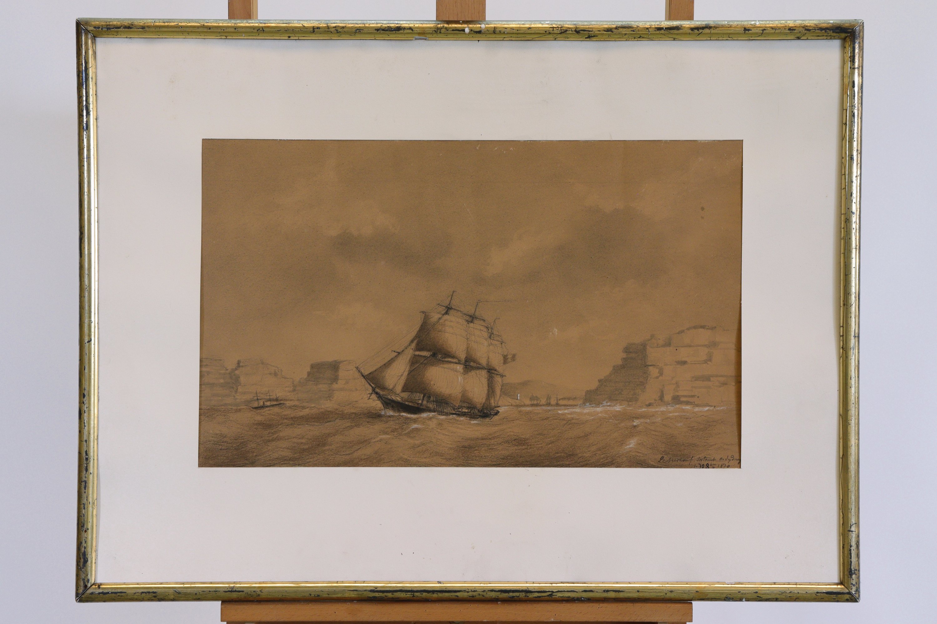Entre 1858 et 1993, cinq navires français ont pris le nom de Surcouf, en référence au corsaire malouin, Robert Surcouf (1773-1827). Le bateau représenté correspondrait au premier navire, un aviso mixte de 531 tonneaux.