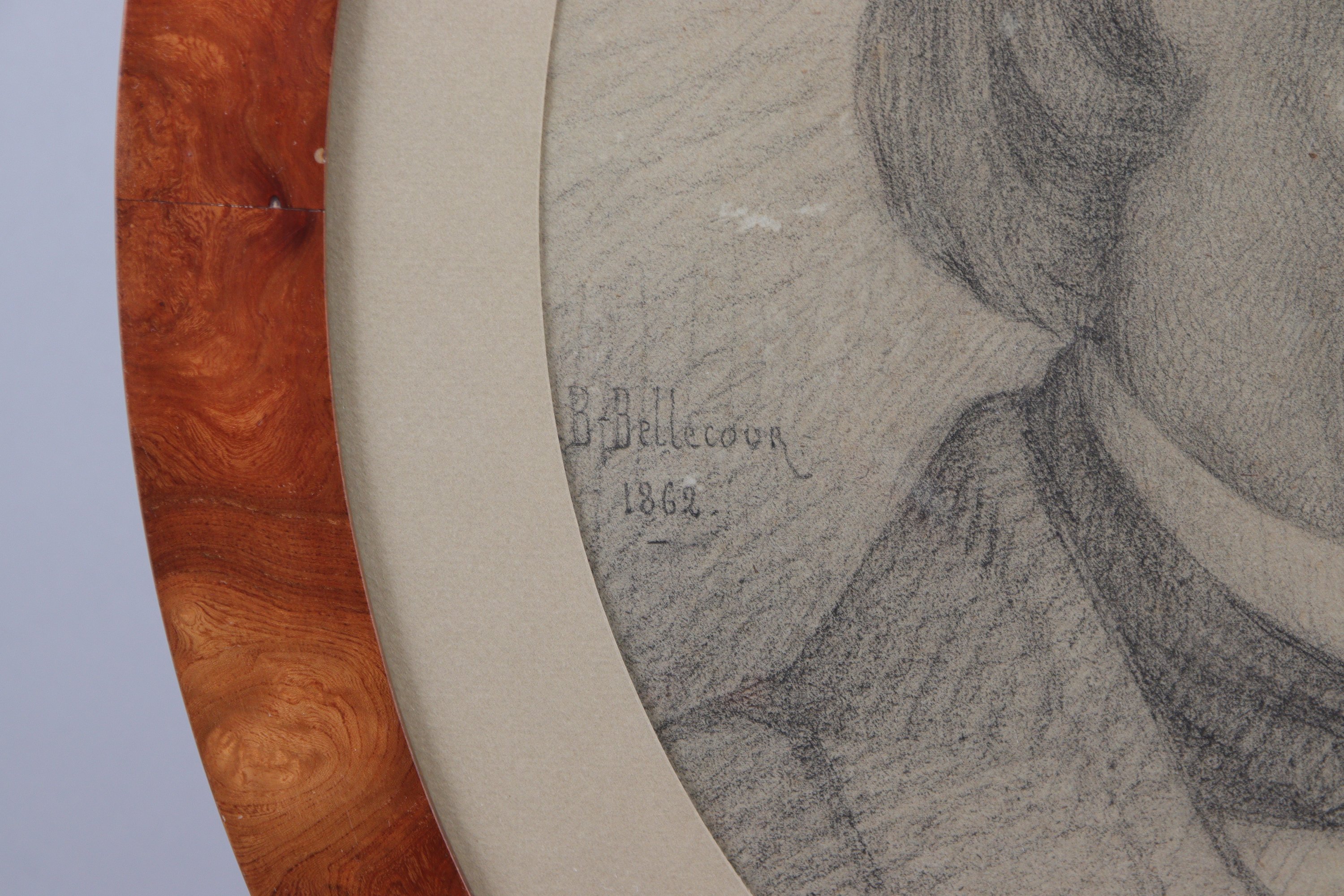 Fusain sur papier préparé au format ovale.