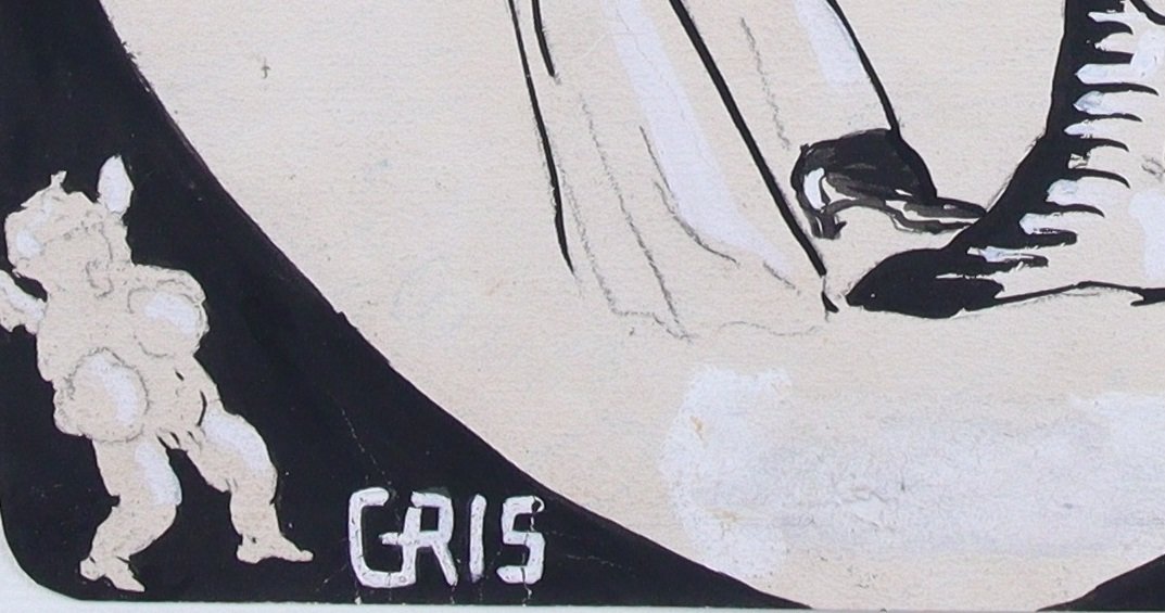 Encre de Chine, gouache blanche, crayon et crayon bleu sur papier.