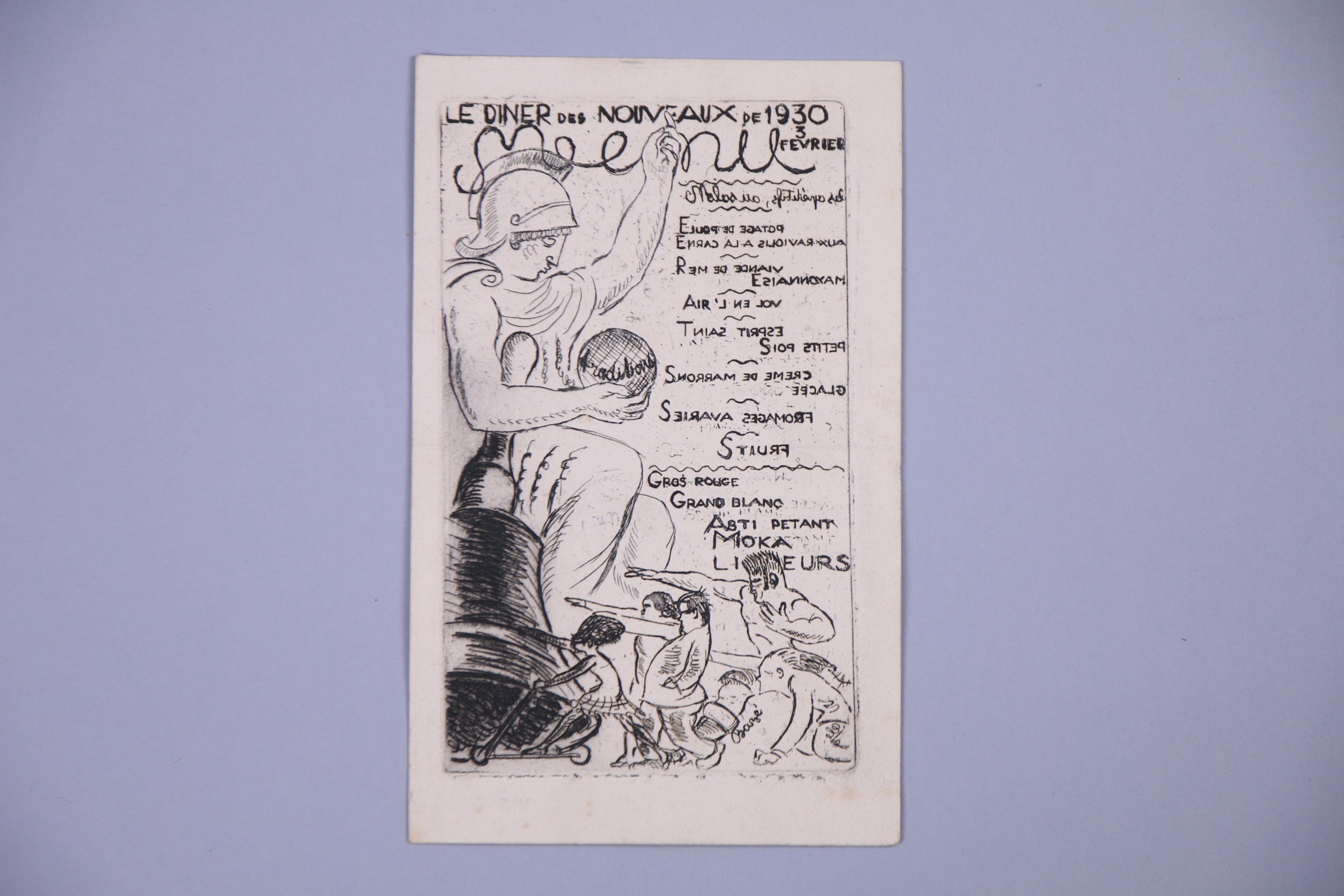 - Le Diner des Nouveaux de 1930, 3 février, eau-forte. Haut. 22 Larg. 13,5 cm ;